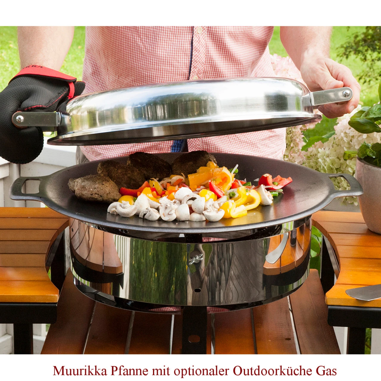 Die original Muurikka Pfannen werden seit 1976 in Finnland hergestellt. Diese vielseitigen Feuerpfannen sind für das Kochen im Freien geeignet und können über einem offenen Feuer, auf Grasbrennern, auf Elektro-, Holzkohle- und Brikettgrills verwendet werden.