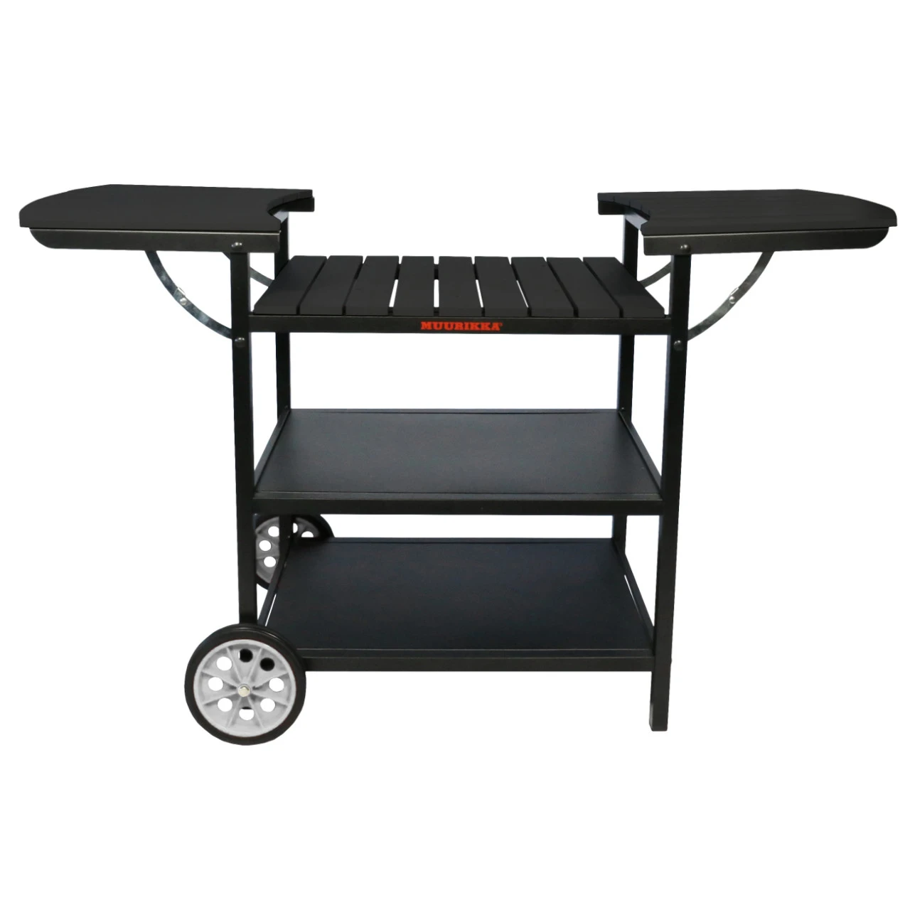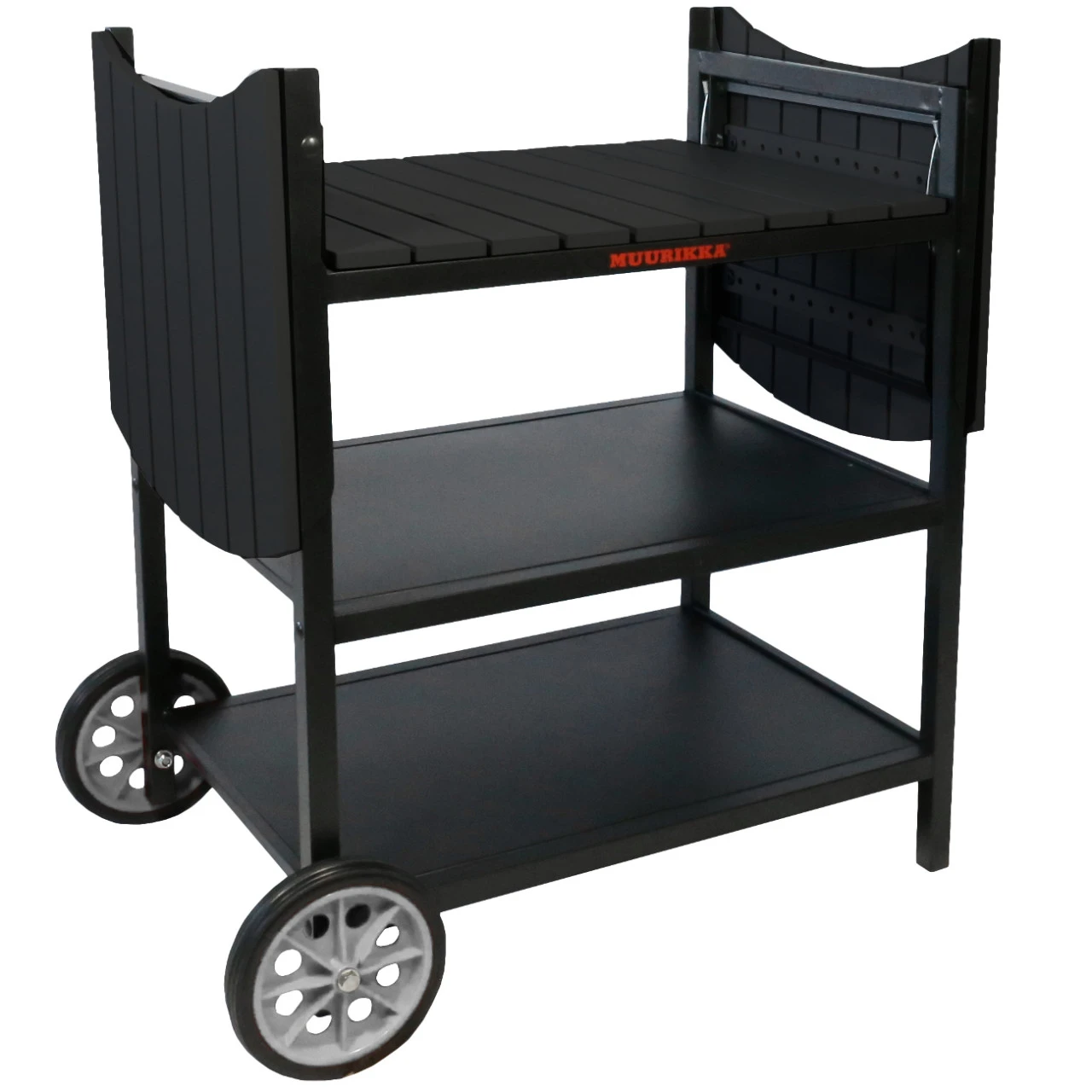 - Küchenwagen Maxi – Gerüst aus schwarz lackierten Stahl mit herunter klappbaren Seitentischen aus Kiefer (in Schwarz)