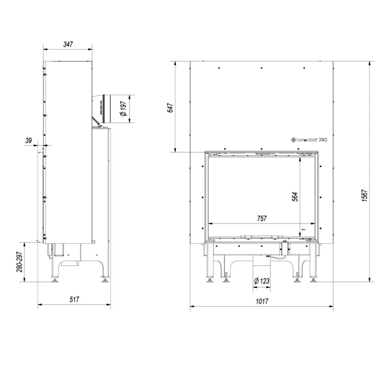 Durchmesser Rauchrohr: 200 mm (197 mm)