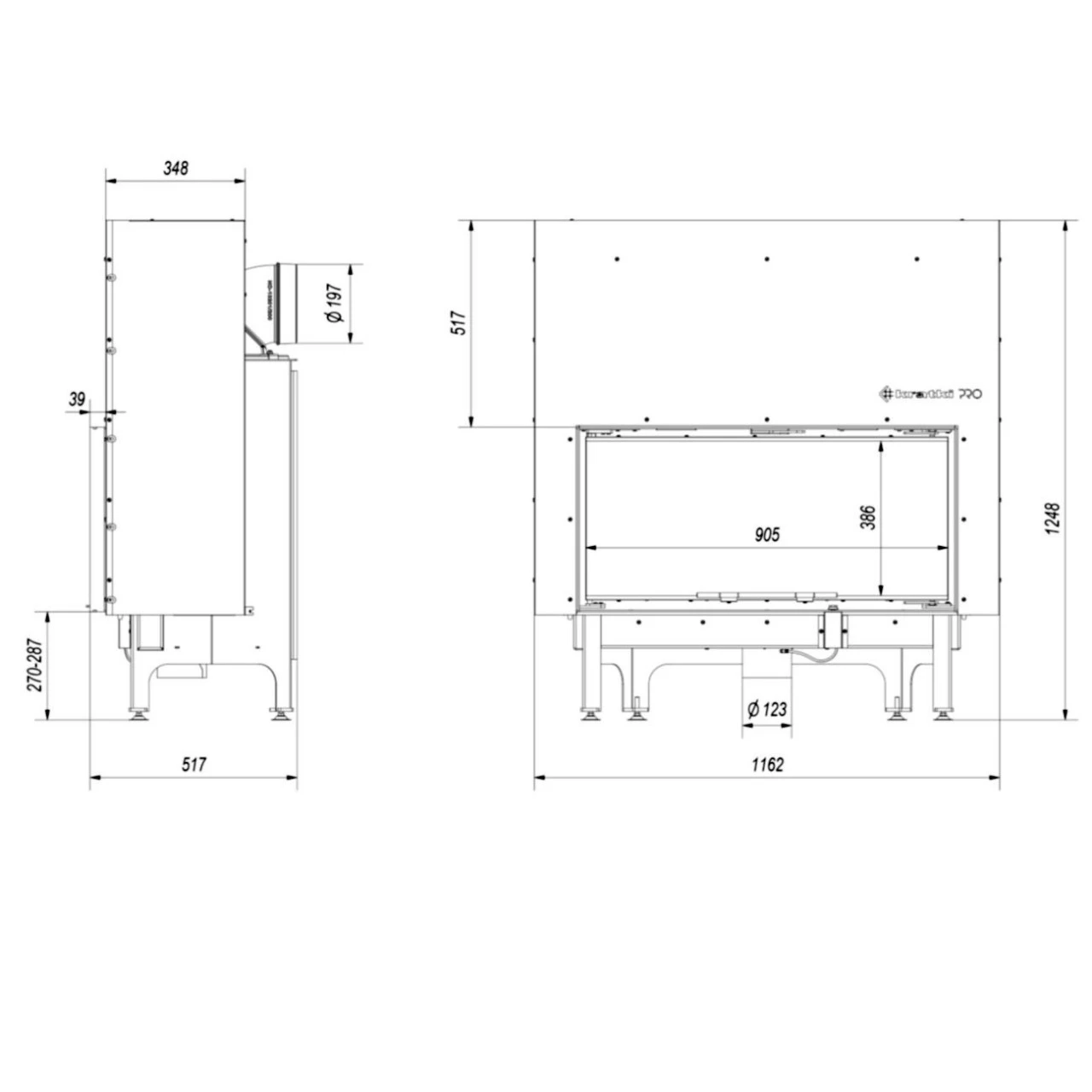 -Der Kamineinsatz ist für die Montage von Wärmekumulationsscheiben speziell angepasst