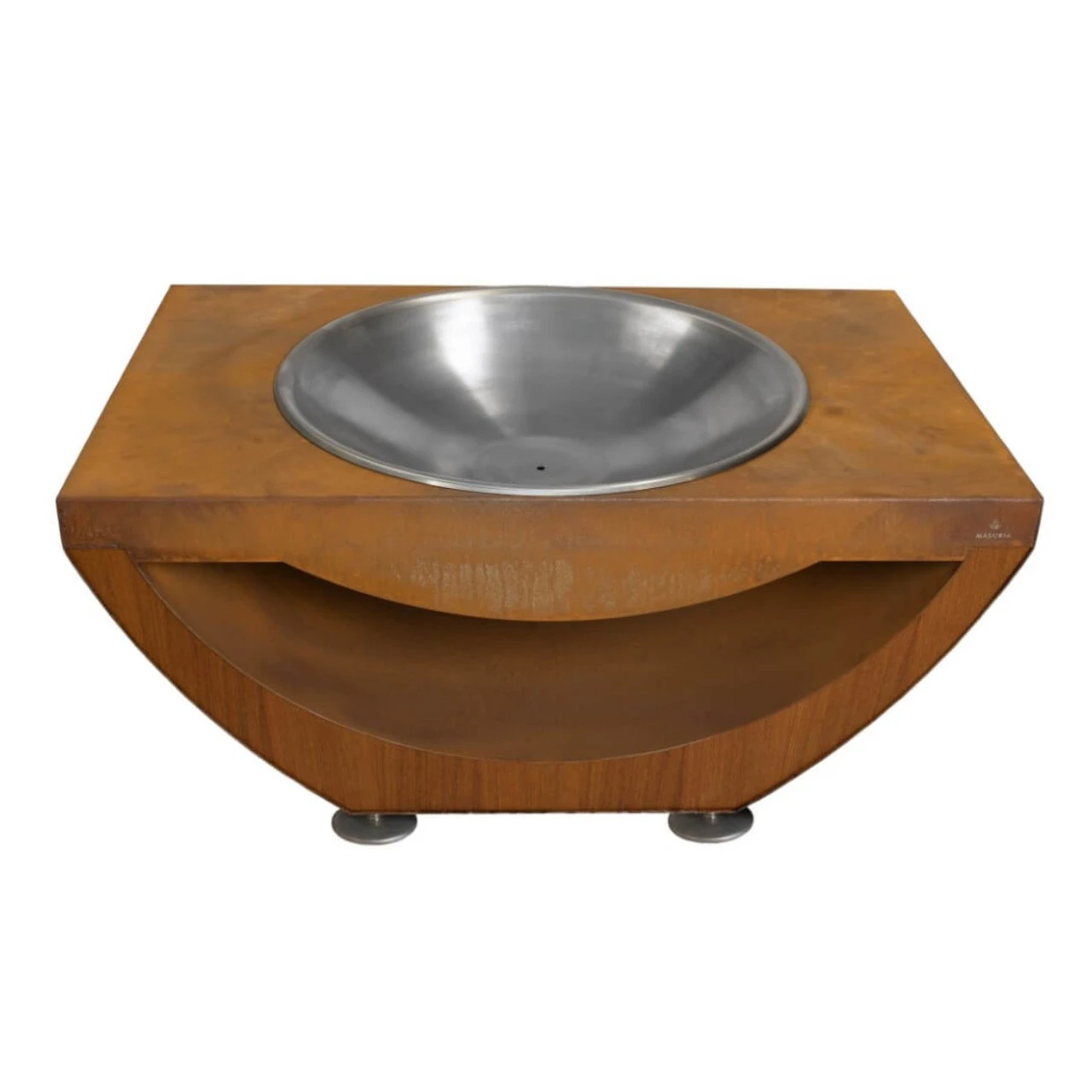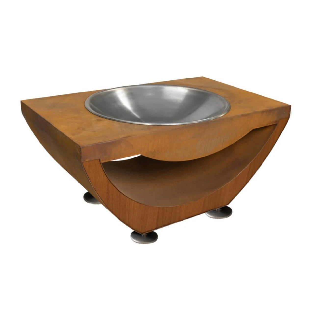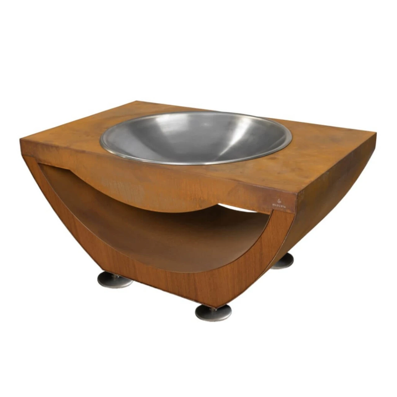 Material: Edelstahl, Cortenstahl, Exotisches Holz