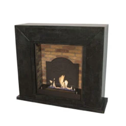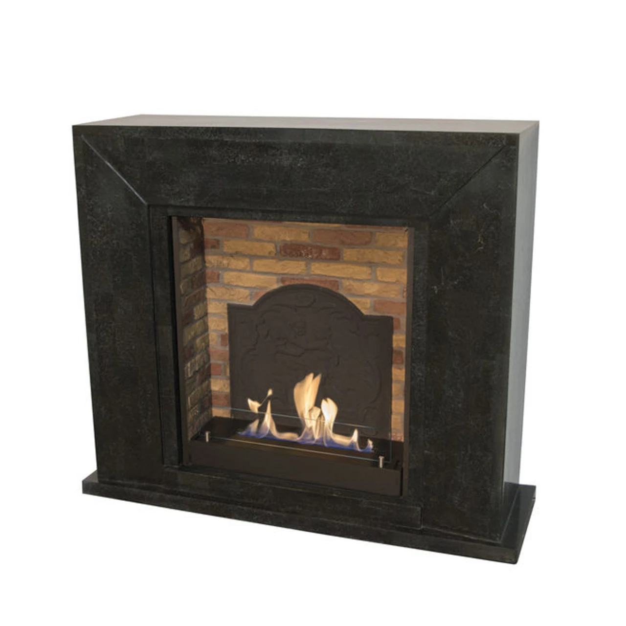 Nero Bioethanol Kamin Naturstein Schwarz Mit Steindekor Und Medaillon