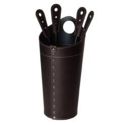 Set bestehend aus Kaminbesteckhalter aus Leder mod. „Nidac“ und 4-teiliges Kaminbesteck mit Ledergriff mod. „Lara“