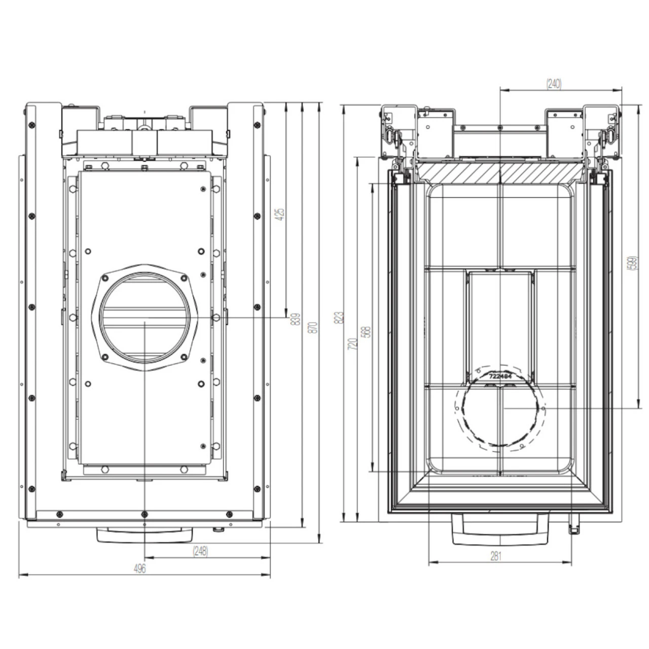 Weitere Maße finden Sie bei den Bildern und im Downloadbereich im Datenblatt (Achtung! Zeichnungen inkl. Konvektionsmantel und Designrahmen)
