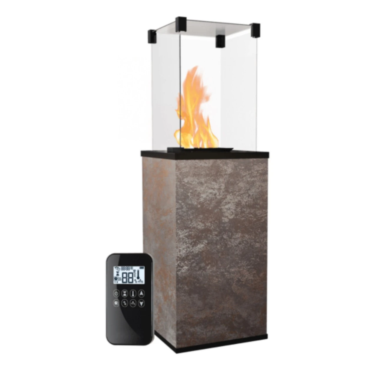 PATIO ein stilvoller Heizpilz, der Wärme und Licht überall dort bietet, wo wir eine einzigartige und gemütliche Atmosphäre schaffen wollen. Seine Besonderheit ist, aus allen vier Ecken kann das Feuer betrachtet werden. Dies macht ihn zu einem einzigartigen Terrassen- oder Gartenkamin.