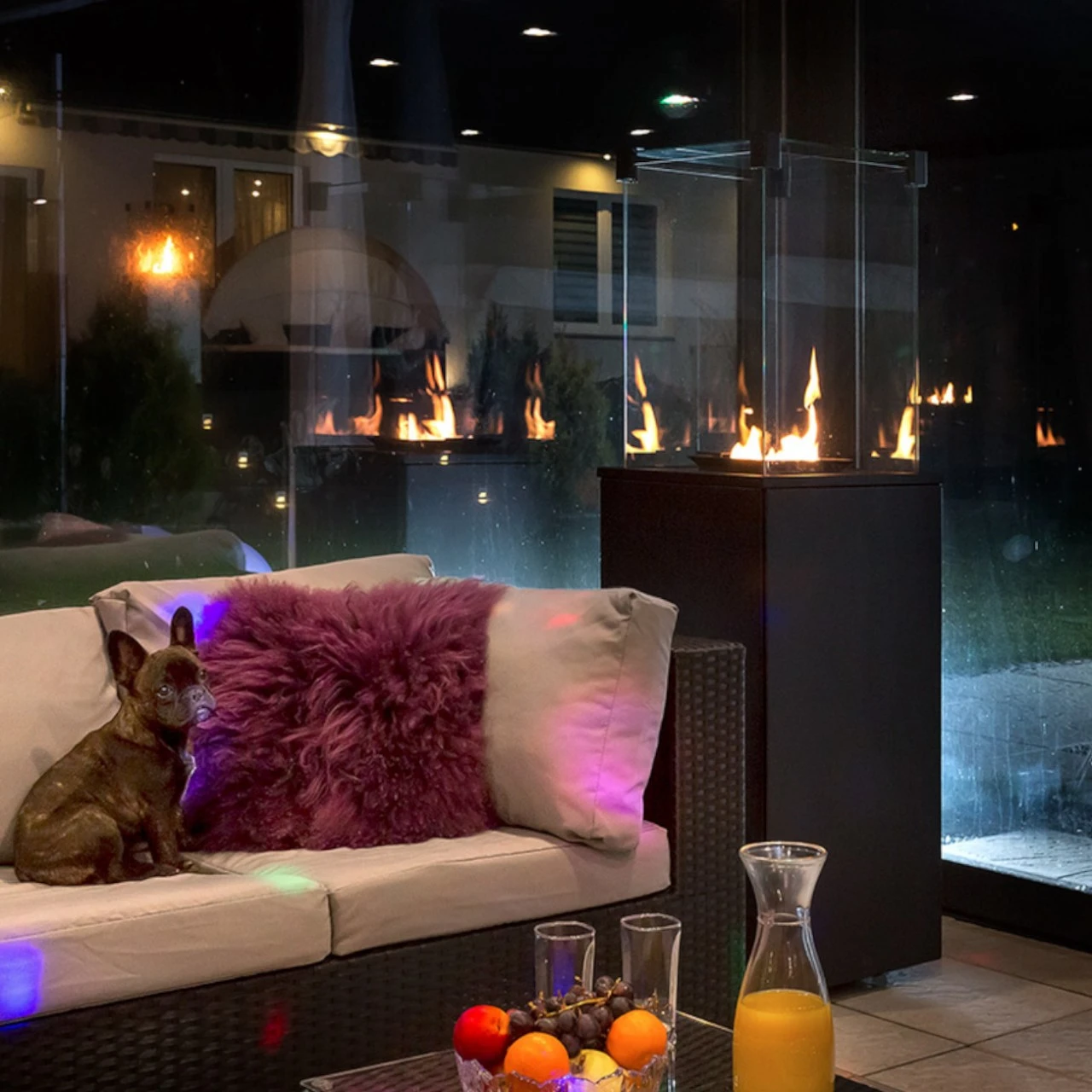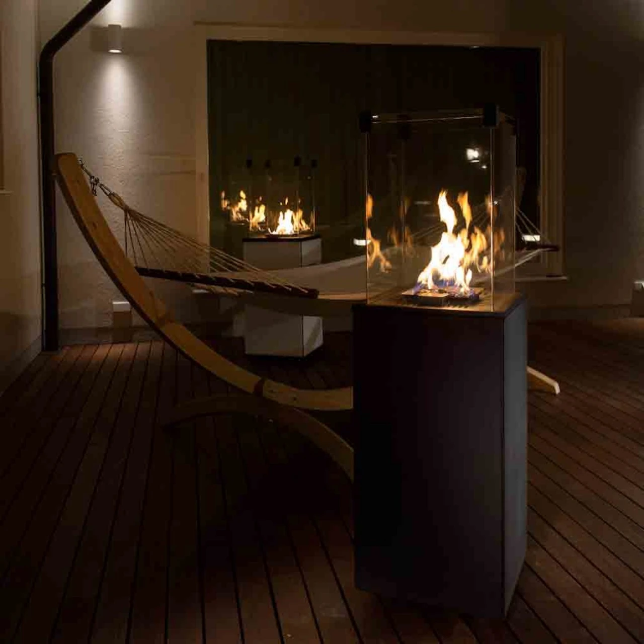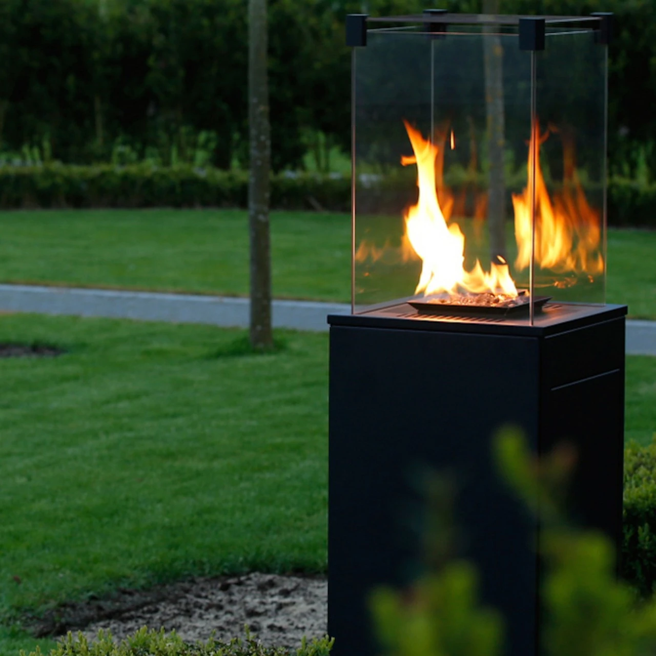 PATIO ein stilvoller Heizpilz, der Wärme und Licht überall dort bietet, wo wir eine einzigartige und gemütliche Atmosphäre schaffen wollen. Seine Besonderheit ist, aus allen vier Ecken kann das Feuer betrachtet werden. Dies macht ihn zu einem einzigartigen Terrassen- oder Gartenkamin.