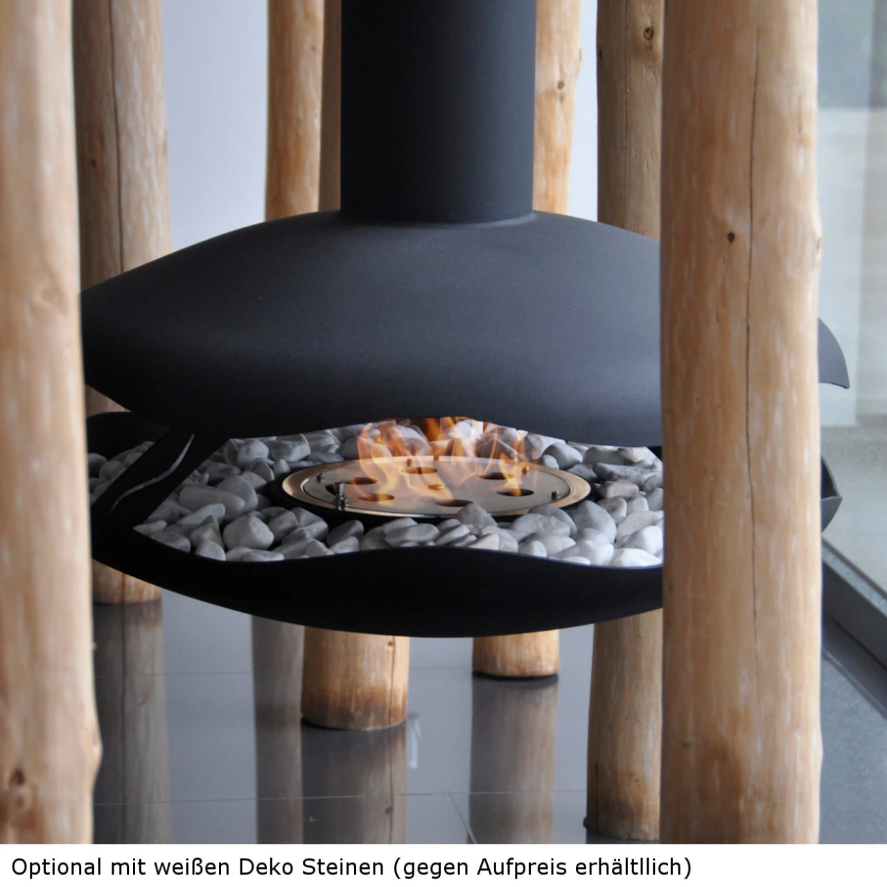 Bitte beachten Sie dass die Decke bzw. dort wo der Biokamin angebracht werden soll, eine Tragfähigkeit von mind. 85 kg betragen sollte.
