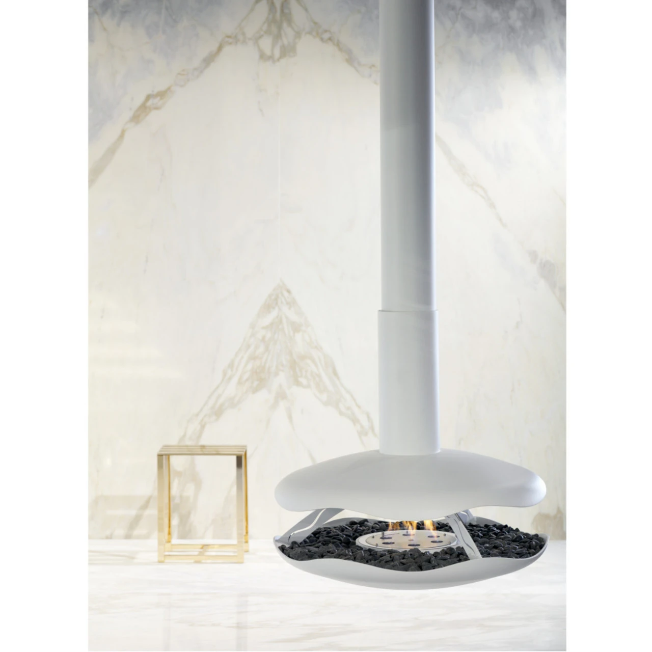 Ein hochästhetisch-funktionales Stück mit einem strengen Finish, das die hervorragende Handarbeit von GlammFire und seine Herangehensweise an das Konzept des hängenden Kamins repräsentiert.