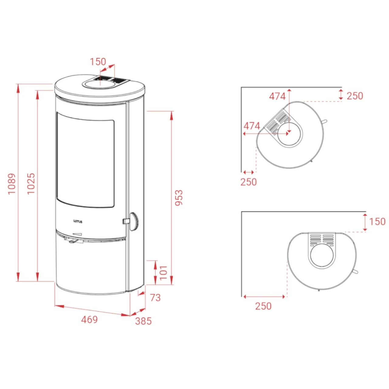 - Abstand von Mitte des Rauchstutzens bis zur Hinterkante des Ofens: 15,0 cm;