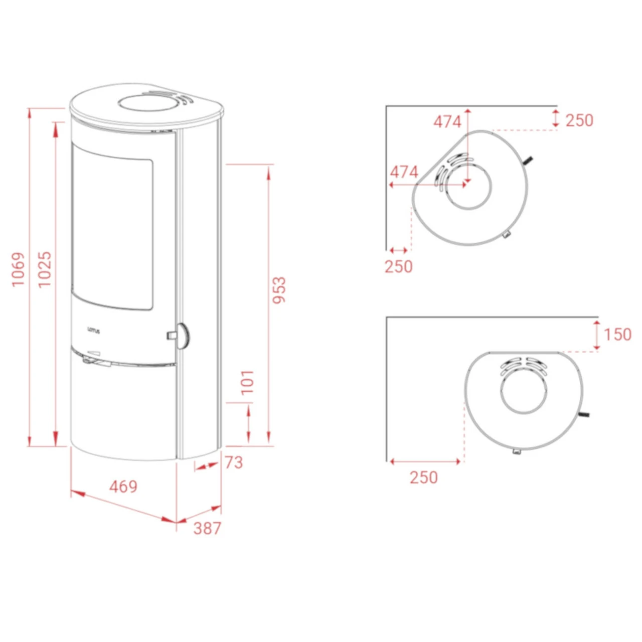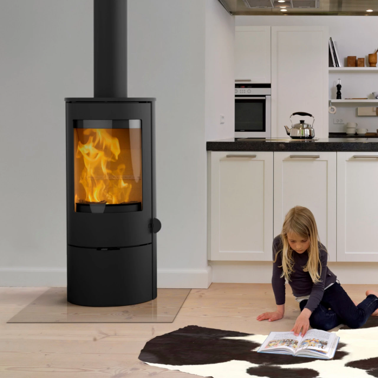 Dank seiner abgerundeten Form und einer Tiefe von nur 38,5 cm findet der Kaminofen fast überall Platz.