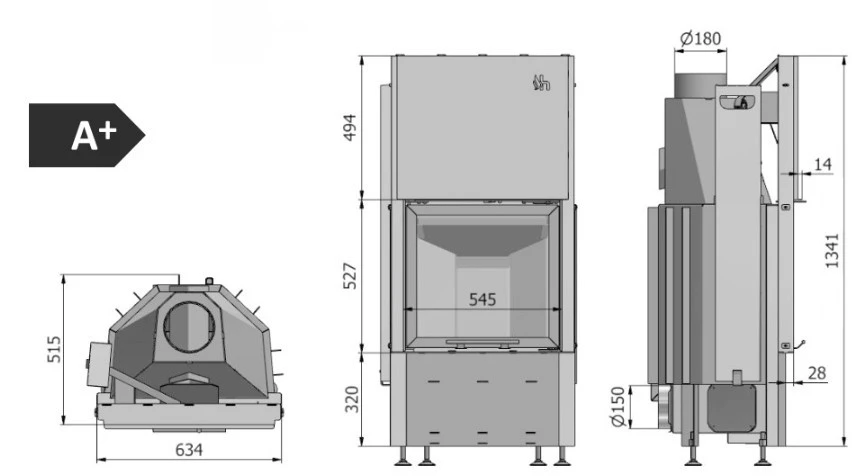 – Warmluftmantel: Bietet Ihnen die Möglichkeit die Warmluft in 2 weitere (Neben)Räume umzuleiten. Durchmesser abgehender Ausgänge: 125 mm