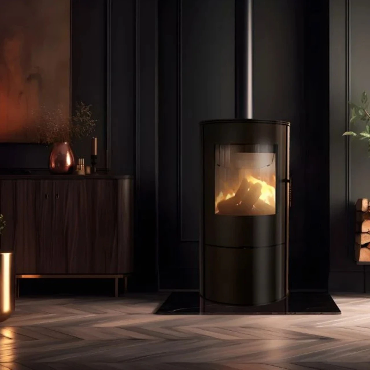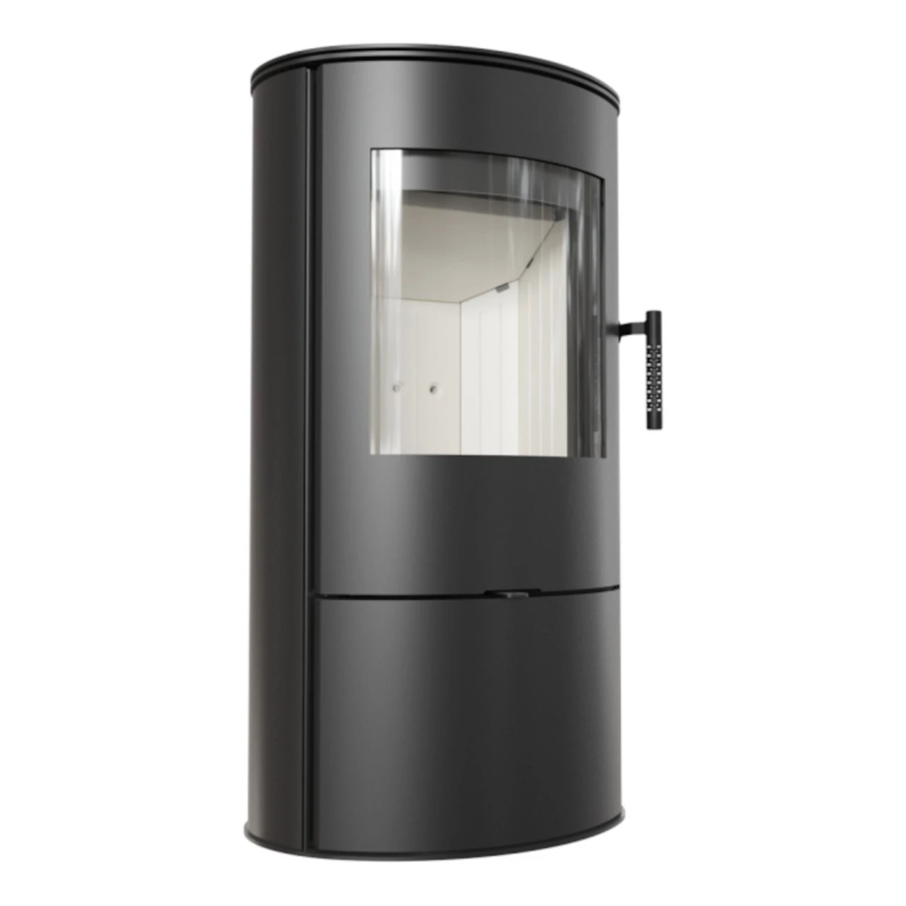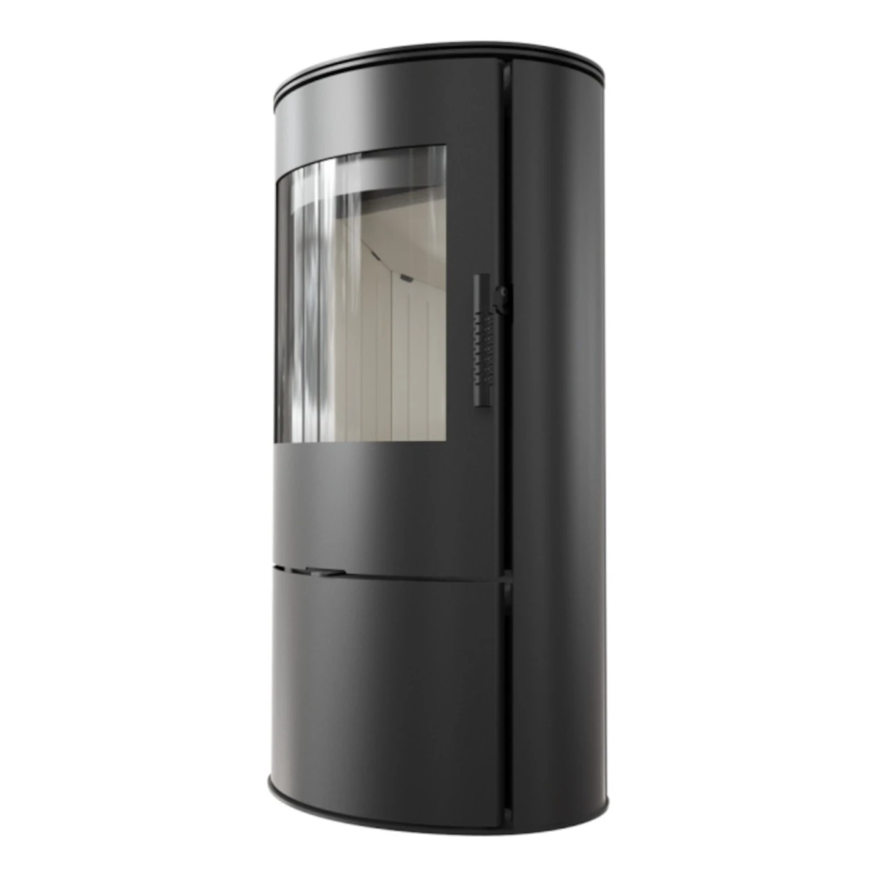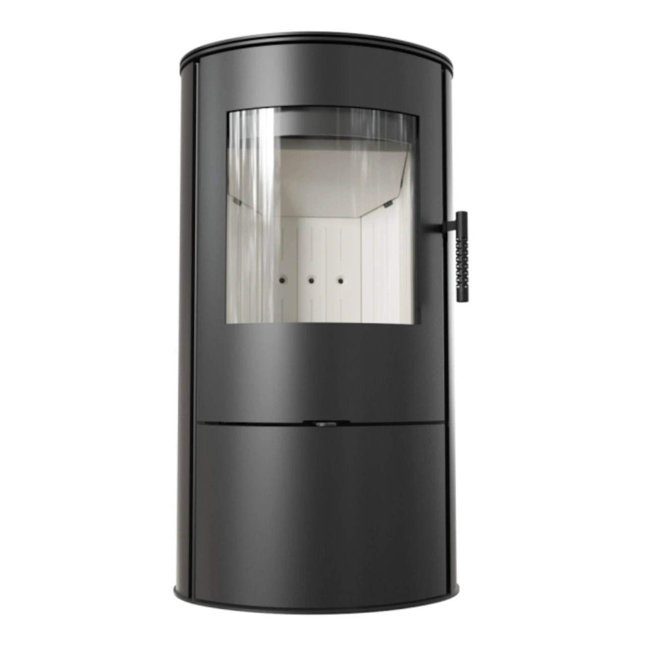 - Das Holzfach unter der Brennkammer ist mit einem Push-to-Open-Mechanismus ausgestattet – Öffnen durch Drücken.