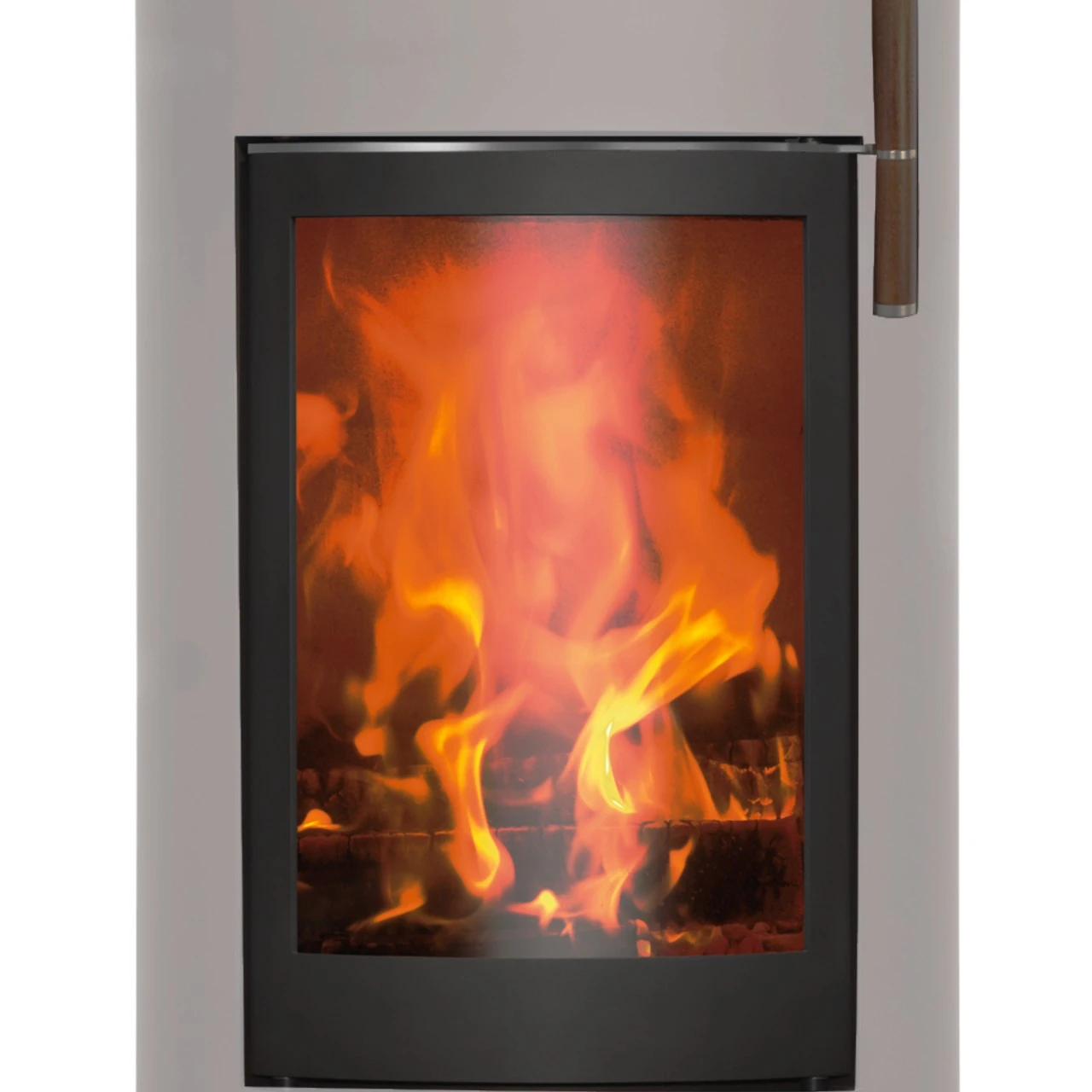 - Ergonomischer kühler Holzgriff – Bedienung des Kamins ohne Handschuhe möglich