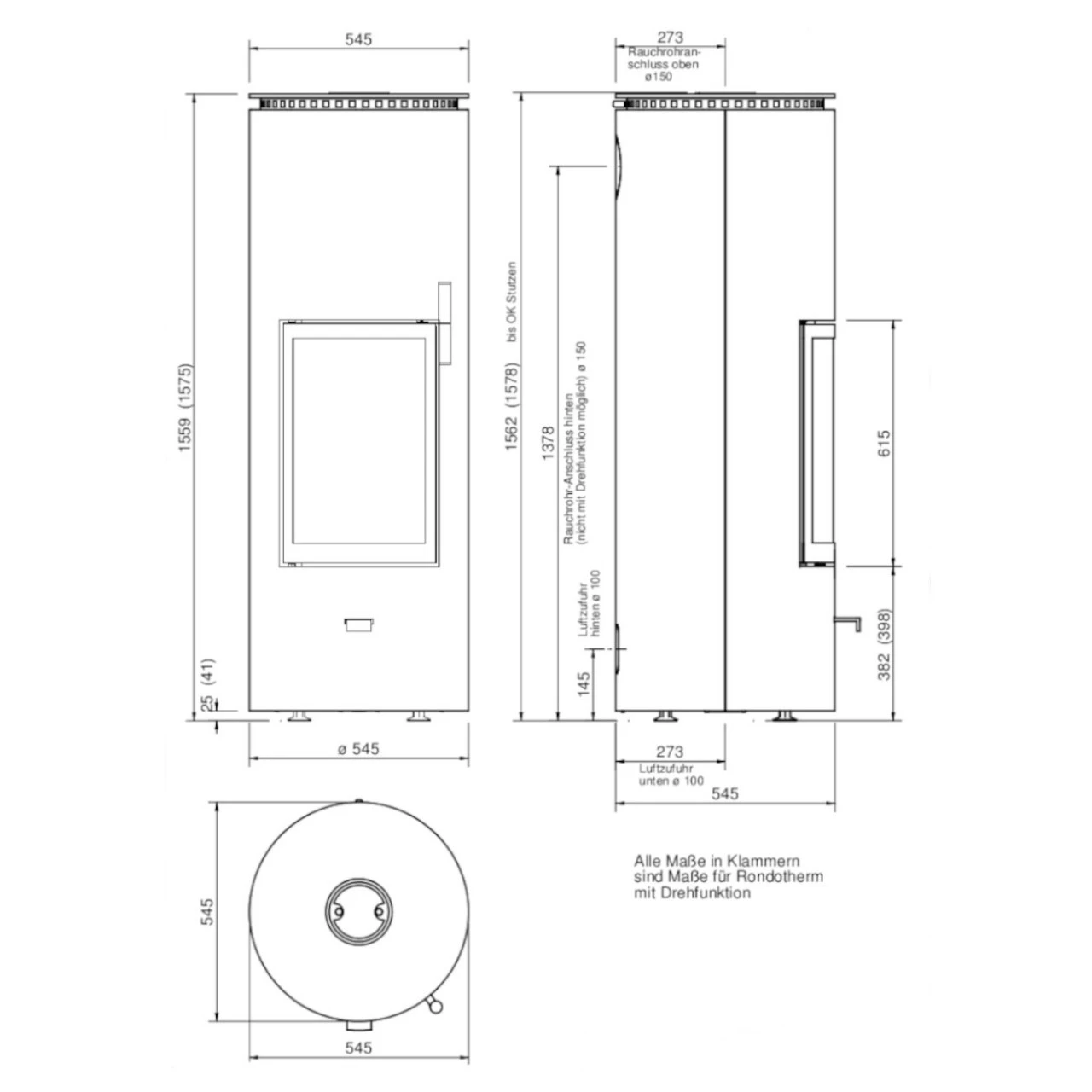 - Drehfunktion 360°: Es besteht die Möglichkeit, einen Drehteller für den Kamin zu erwerben. Somit kann der Kaminofen Rondotherm in jede Richtung gedreht werden und Sie können das Feuer aus jedem Winkel genießen. Mit drehbaren Rauchrohrstutzen. Auch mit drehbaren Stutzen für Frischluftzufuhr.
