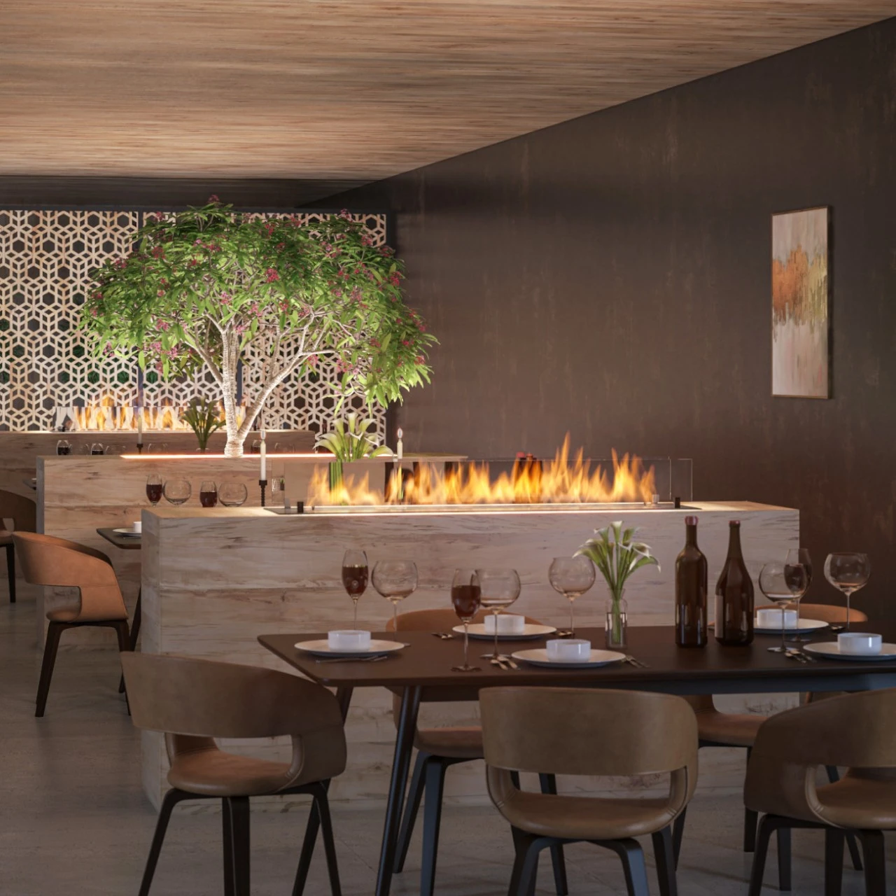 Der Biokamineinsatz ist zum Einbau in ein Loch/eine Nische geeignet und erfordert keine zusätzliche Isolierung.
