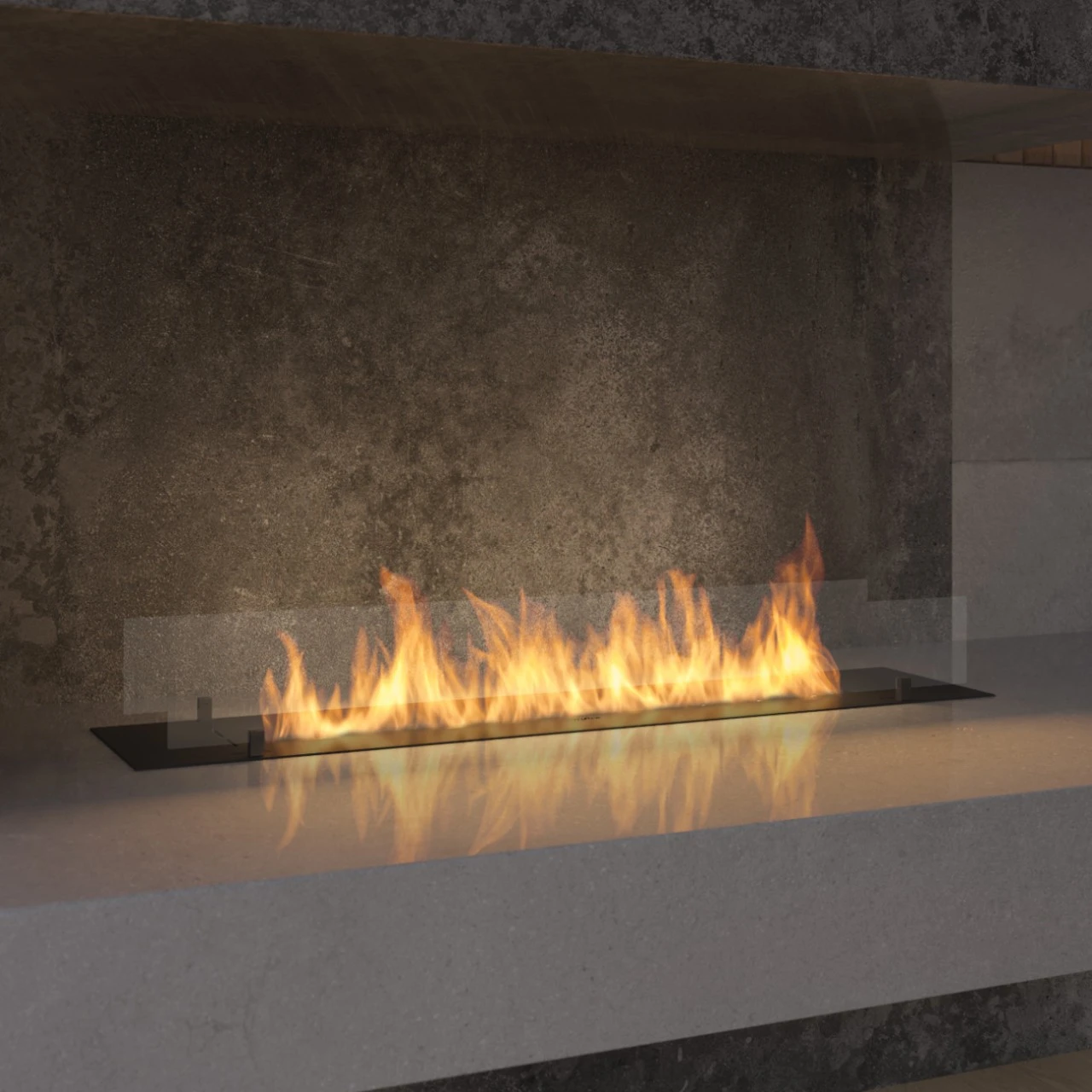 Eine Keramikfasereinlage mit Netz erhöht die Sicherheit und verlängert und optimiert den Brennvorgang. Mit der Schiebeleiste können Sie die Flammengröße anpassen und den Kamin sicher löschen, und durch die Wellenform entsteht ein zusätzlicher 3D-Effekt.