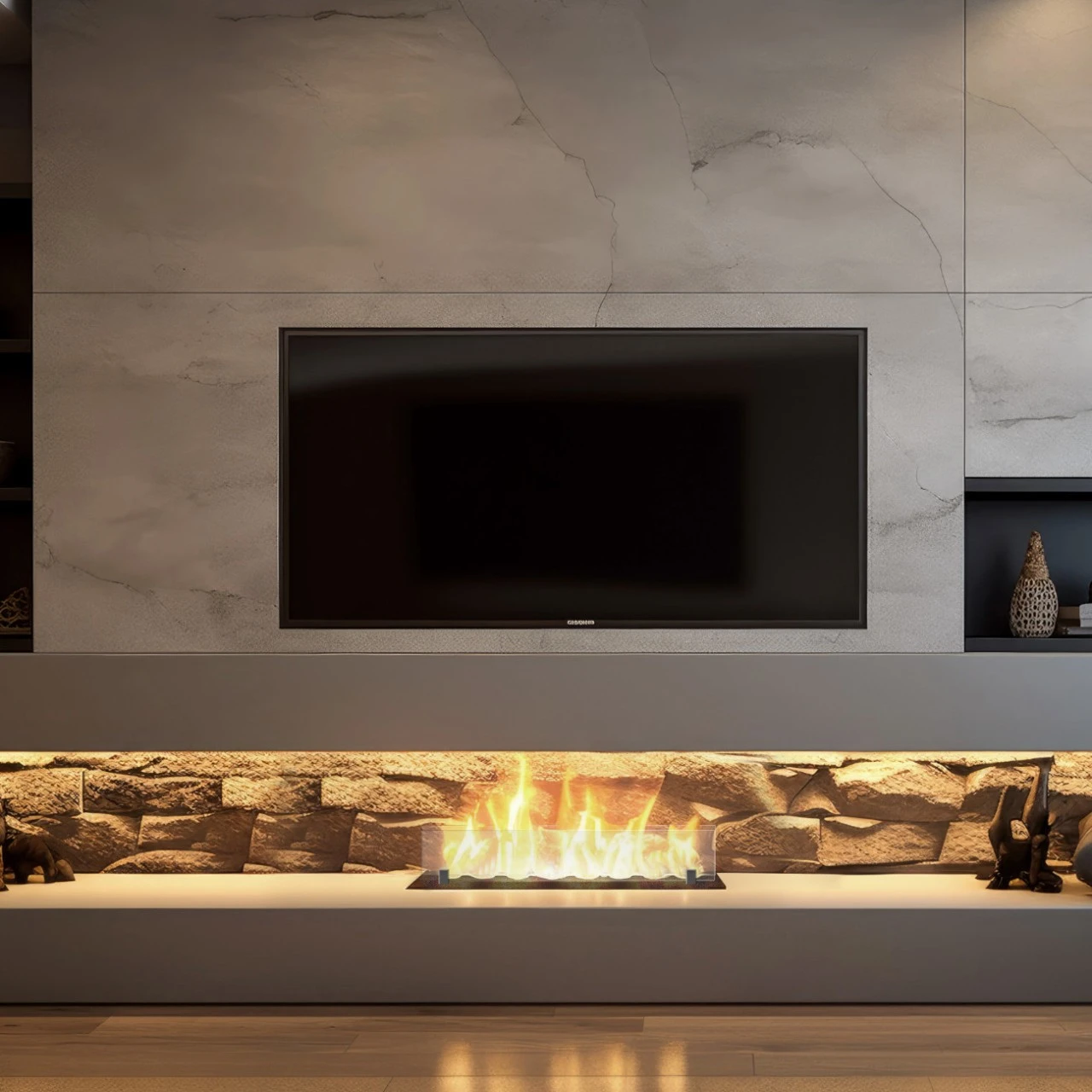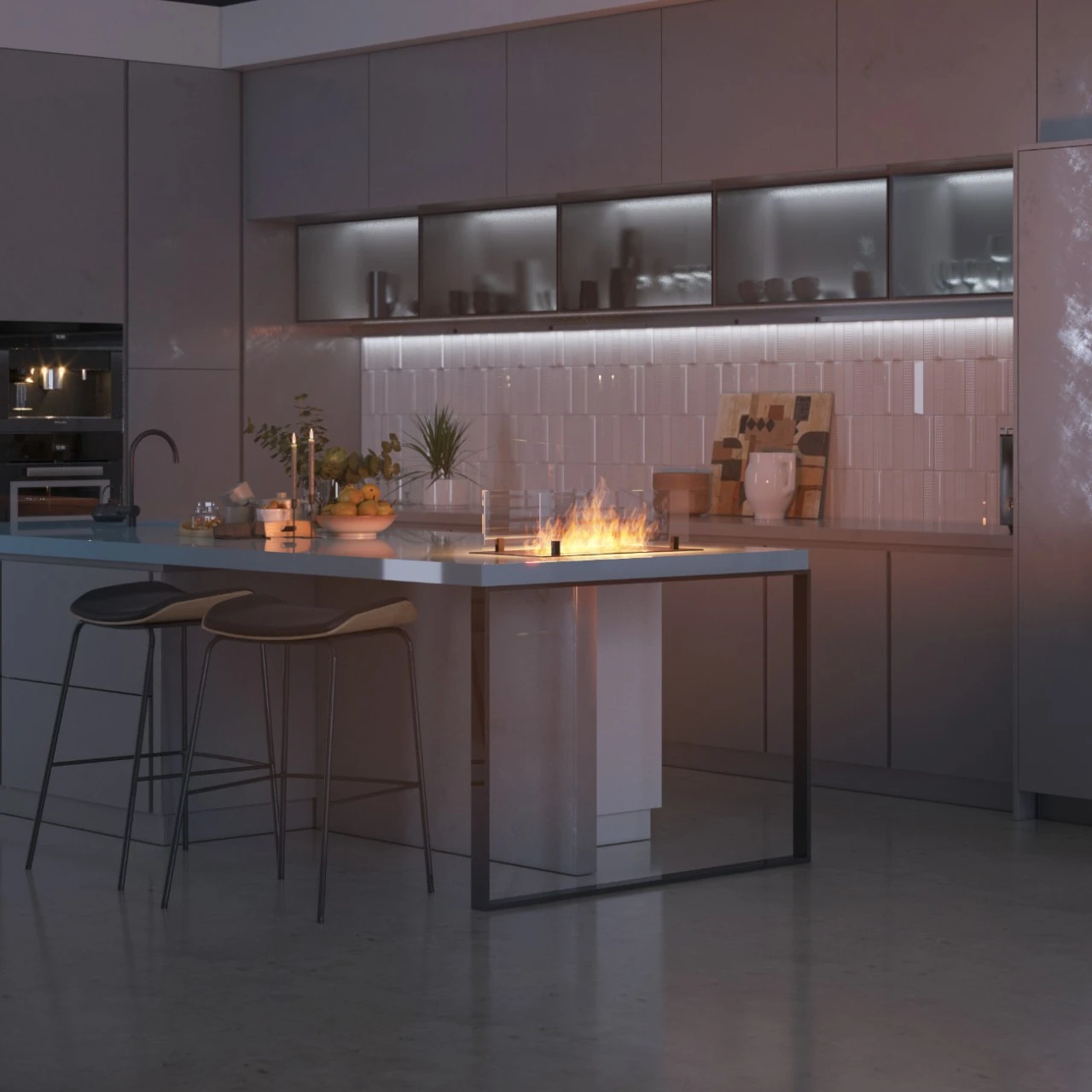 Der Biokamineinsatz ist zum Einbau in ein Loch/eine Nische geeignet und erfordert keine zusätzliche Isolierung.