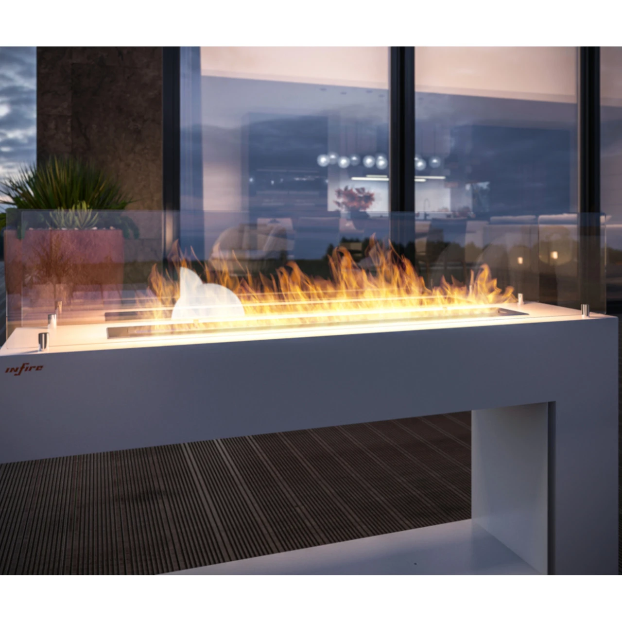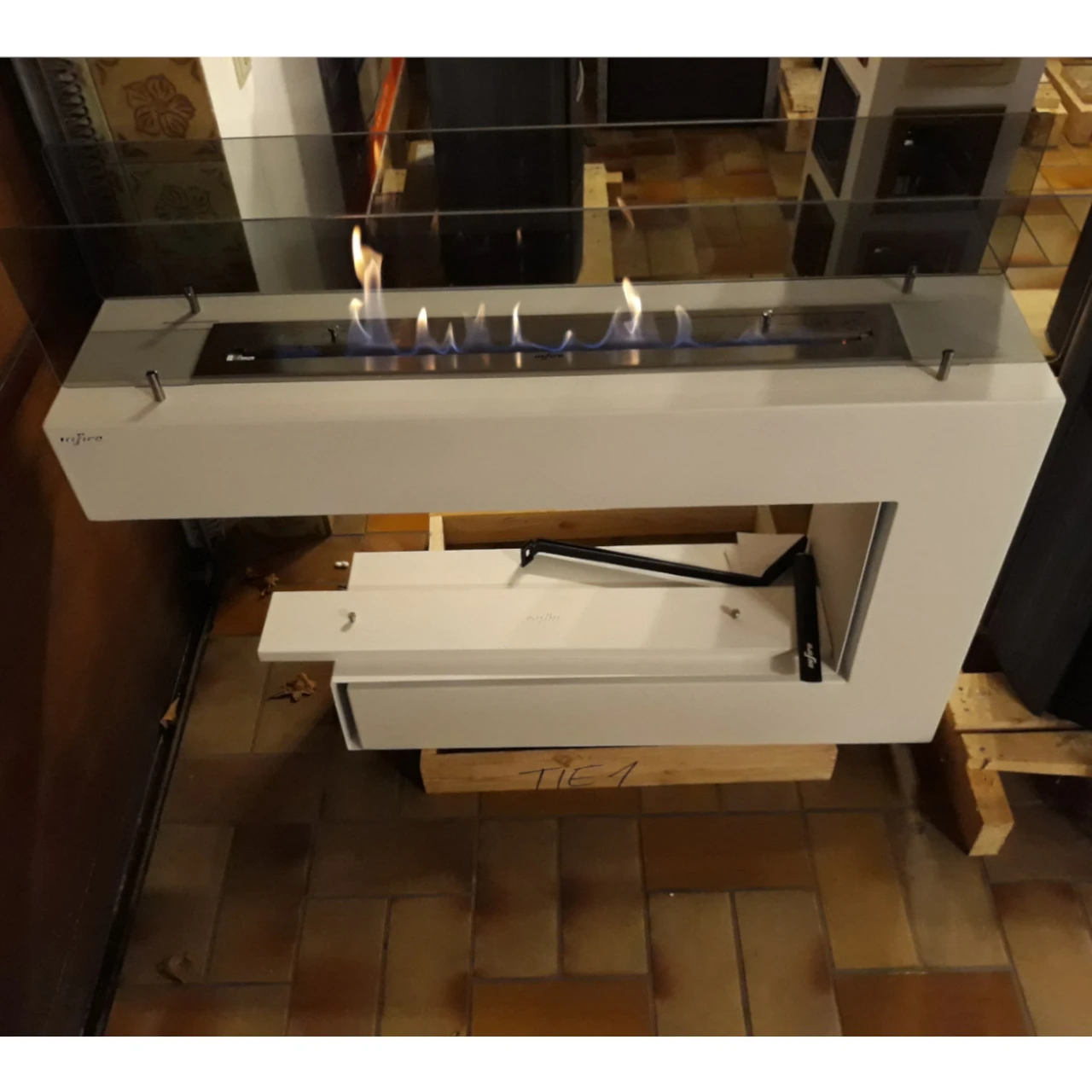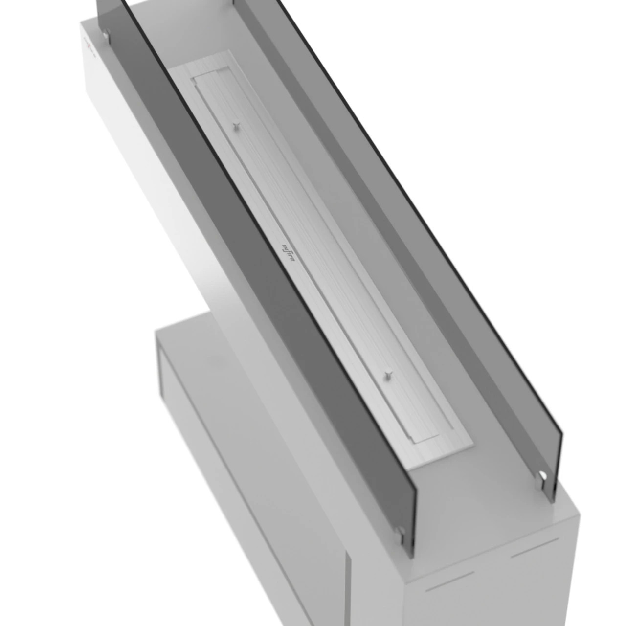 „Das Modell Spectrum ist ein freistehender Kamin, der sich durch modernes Design auszeichnet. Seine einzigartige Form fügt sich perfekt in den Innenraum ein, sowohl mit klassischem als auch mit modernem Charakter. Seine Anpassung an den Innenraum kann hauptsächlich durch verschiedene Farben erreicht werden. Getönte (gehärtete) Scheiben lassen die Flamme extrem klimatisch aussehen und sorgen für Sicherheit während des Betriebs. Der Kamin Spectrum wurde so projektiert, dass sein unterer Teil als Regal genutzt werden kann. Der Kamin ist zweiseitig, so dass Sie ihn überall aufstellen können, nicht unbedingt in der Nähe einer Wand. Dadurch haben Sie die Möglichkeit, das Feuer von zwei verschiedenen Seiten oder in zwei verschiedenen Räumen zu genießen.„