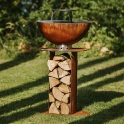 Stilo mit Holzplatz ist eine funktionale Feuerstelle, die viel natürliche Wärme spendet und es Ihnen ermöglicht, außergewöhnlich leckere Gerichte im Schoß der Natur zuzubereiten. Das Holz in einem speziellen Schacht ergänzt perfekt ihren rohen Designstil. Stilo verfügt über eine ergonomische Feuerstelle, mit Holz befeuert, die ihren Heizwert bei minimalem Verbrauch optimal nutzt. Eine spezielle Platte ermöglicht es Ihnen, eine gesündere und viel komfortablere Alternative zum traditionellen Grillen zu schaffen.