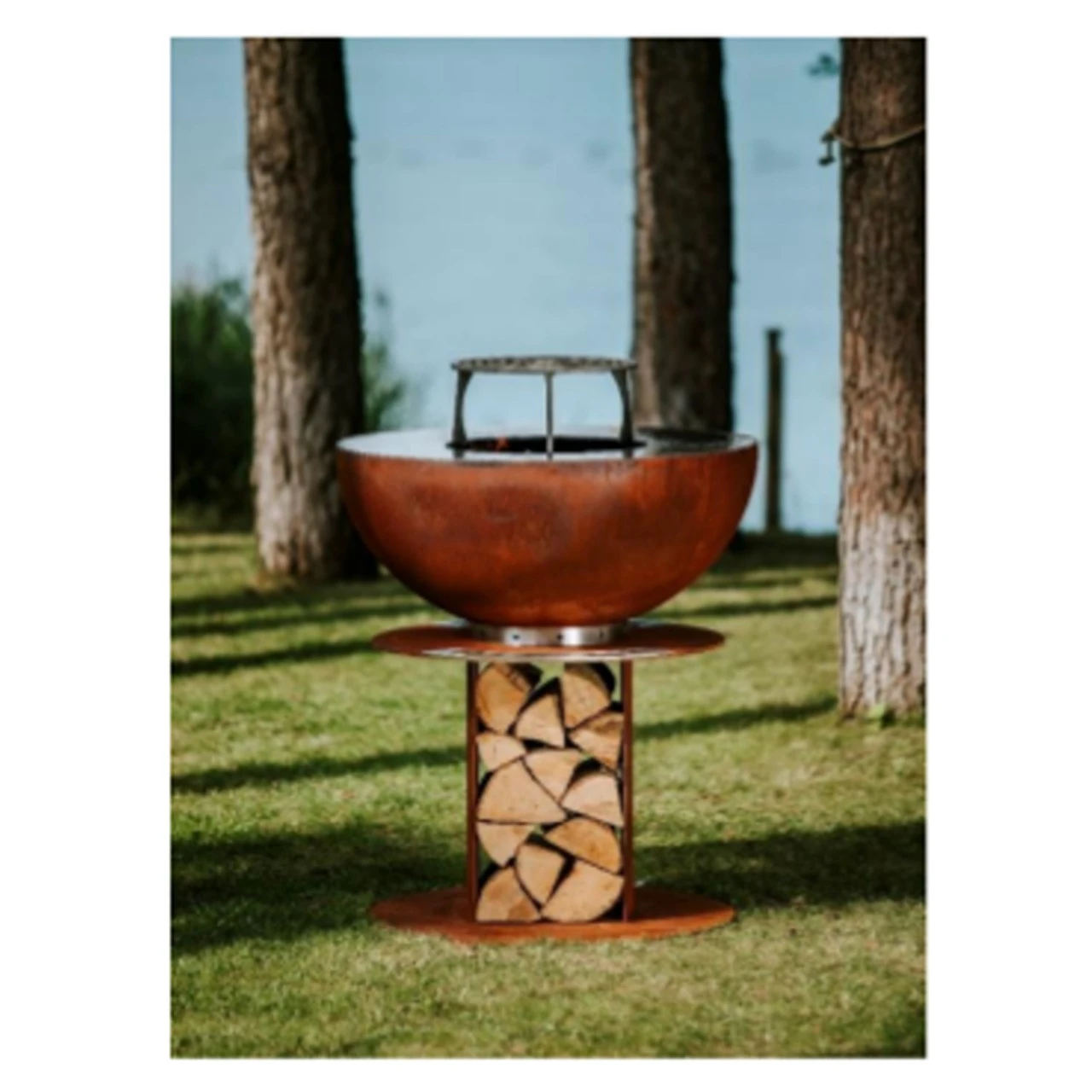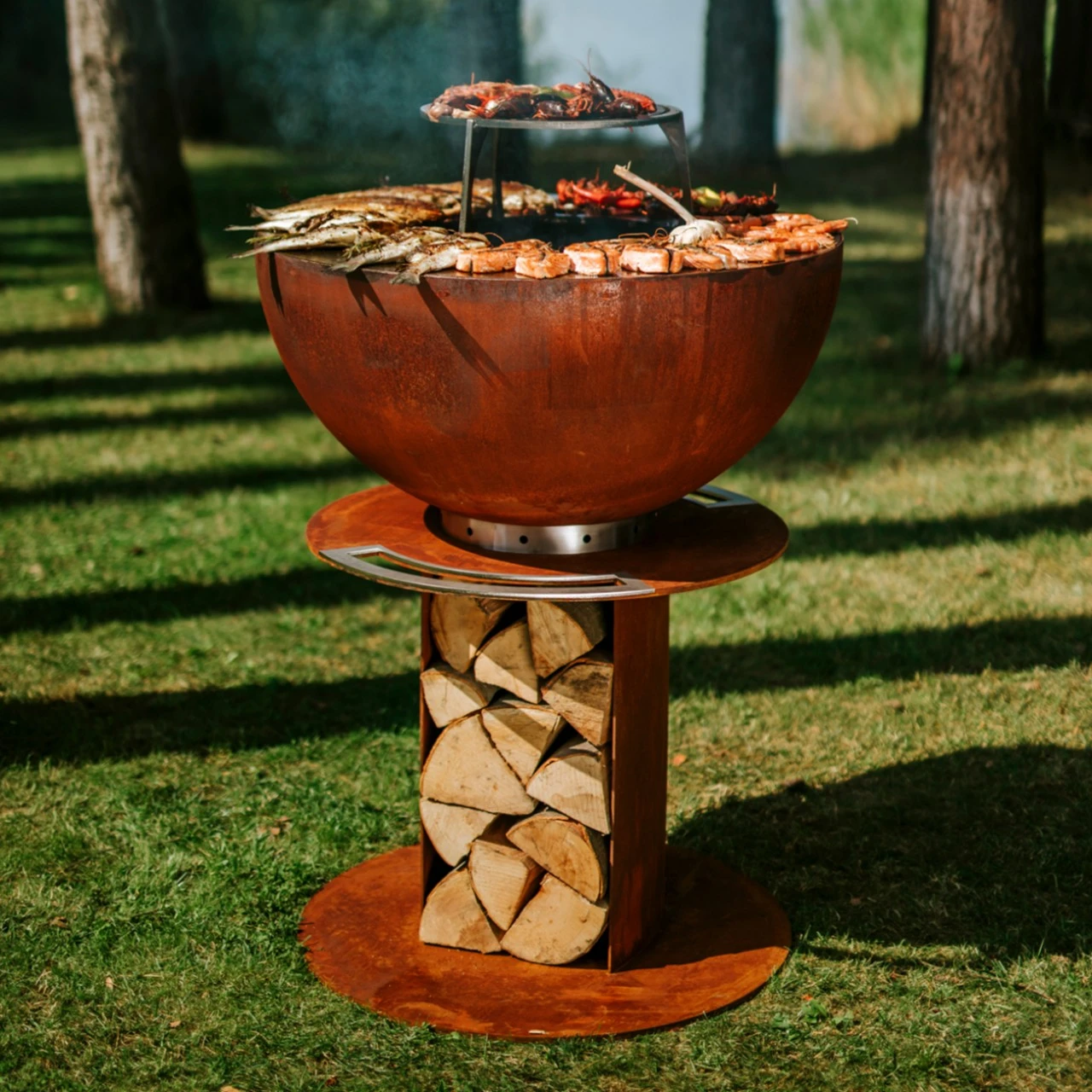 Stilo mit Holzplatz ist eine funktionale Feuerstelle, die viel natürliche Wärme spendet und es Ihnen ermöglicht, außergewöhnlich leckere Gerichte im Schoß der Natur zuzubereiten. Das Holz in einem speziellen Schacht ergänzt perfekt ihren rohen Designstil. Stilo verfügt über eine ergonomische Feuerstelle, mit Holz befeuert, die ihren Heizwert bei minimalem Verbrauch optimal nutzt. Eine spezielle Platte ermöglicht es Ihnen, eine gesündere und viel komfortablere Alternative zum traditionellen Grillen zu schaffen.