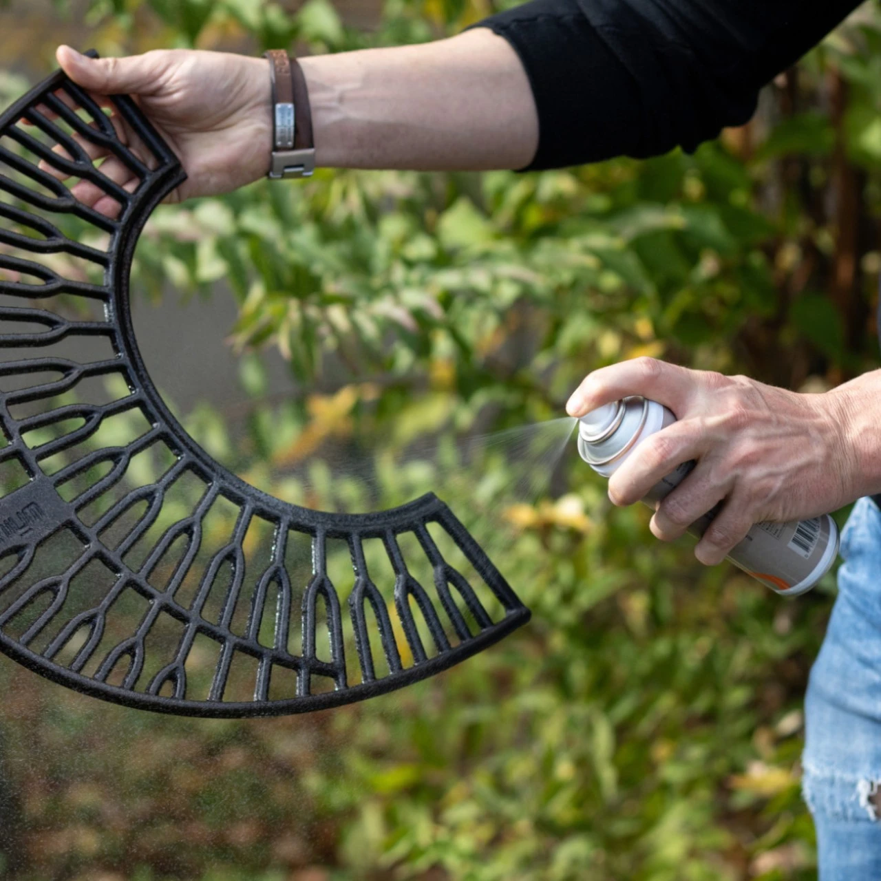 Die Gussteile des Holzkohle-Grills sind auf natürliche Weise mit Speiseöl beschichtet. Das eingebrannte Öl ist lebensmittelecht und bildet eine vor Rost schützende Patina.