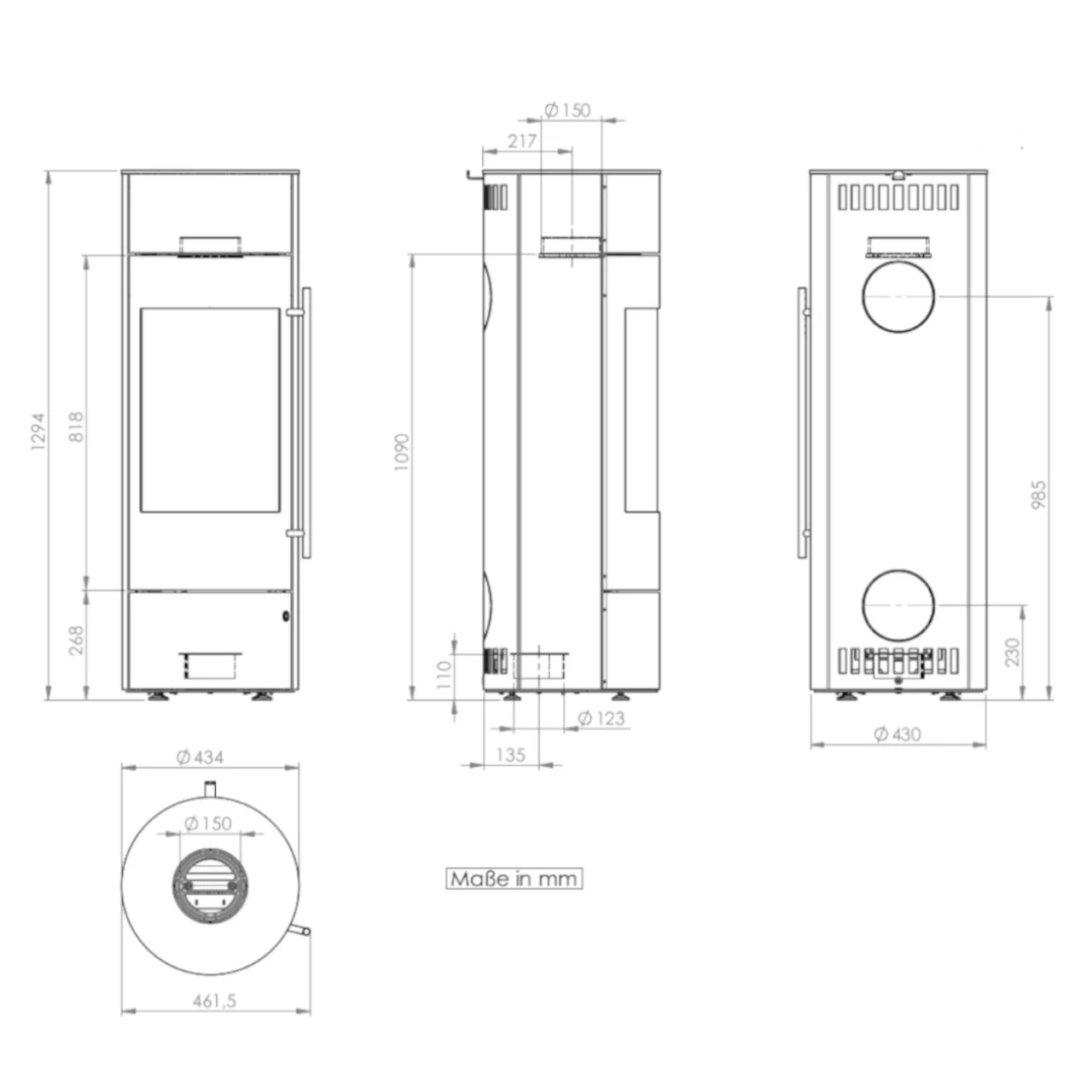- Wärmespeicherfähigkeit: Ja, Optioanl mit Powerbloc auszustatten – 39 kg Wärmespeicherung