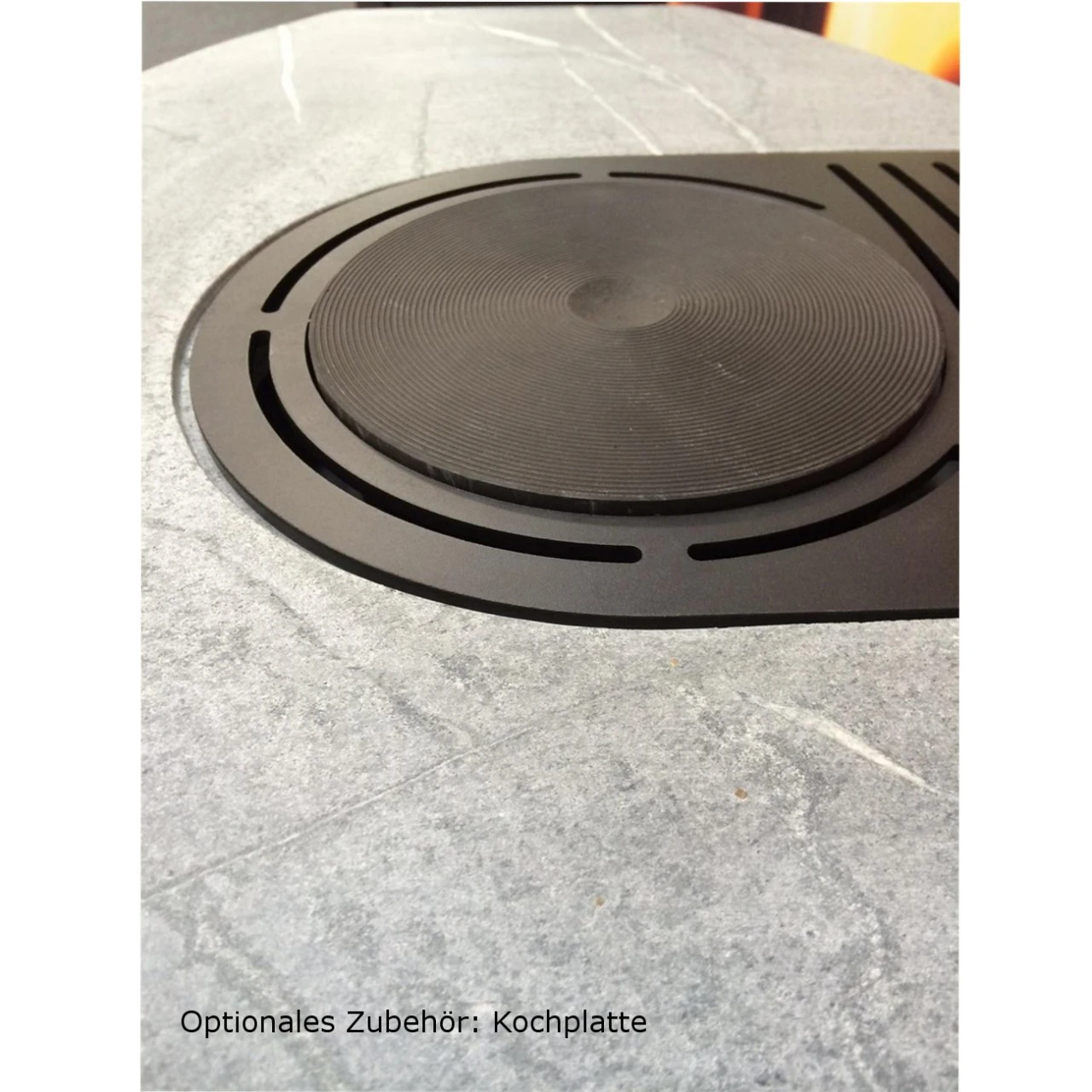 - Kochplatte – nur verwendbar wenn das Rauchrohr hinten angeschlossen wird
