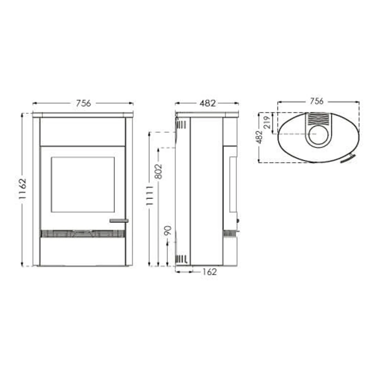- Abstand von Mitte des Rauchstutzens bis zur Hinterkante des Ofens: 21,9 cm;