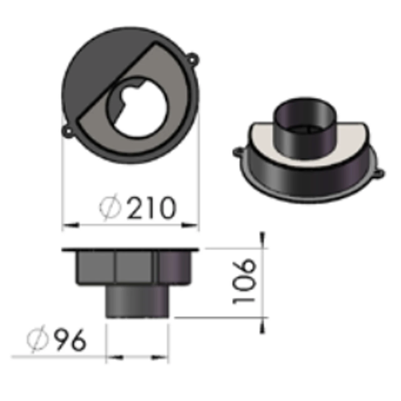 - Durchmesser Anschluss externe Luftzufuhr: 100 mm;
