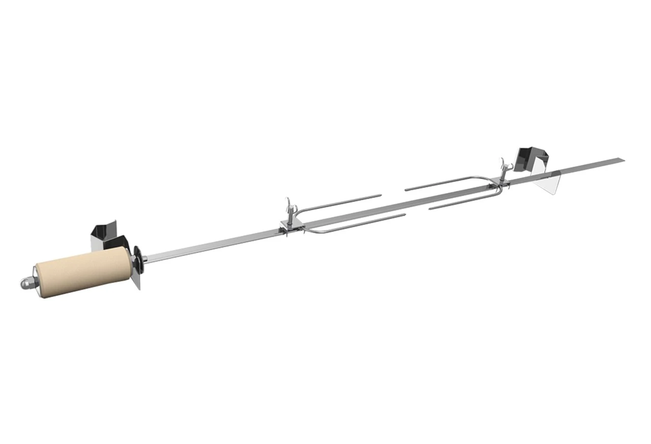 Der Drehspieß wird zwischen den Rohren der Grillplatte platziert.