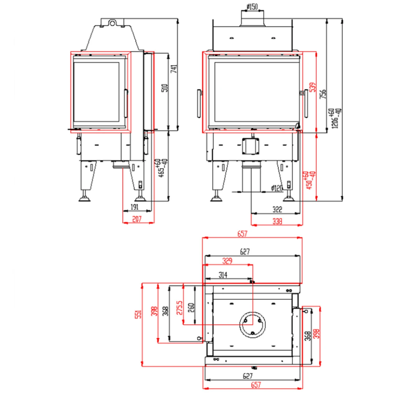 - Besonderheiten Kamin: Anschluss für Externe Luftzufuhr/ Frischluftzufuhr; Höhenverstellbare Füße; Kühler Griff (der Griff wird nicht heiß, sondern nur warm);