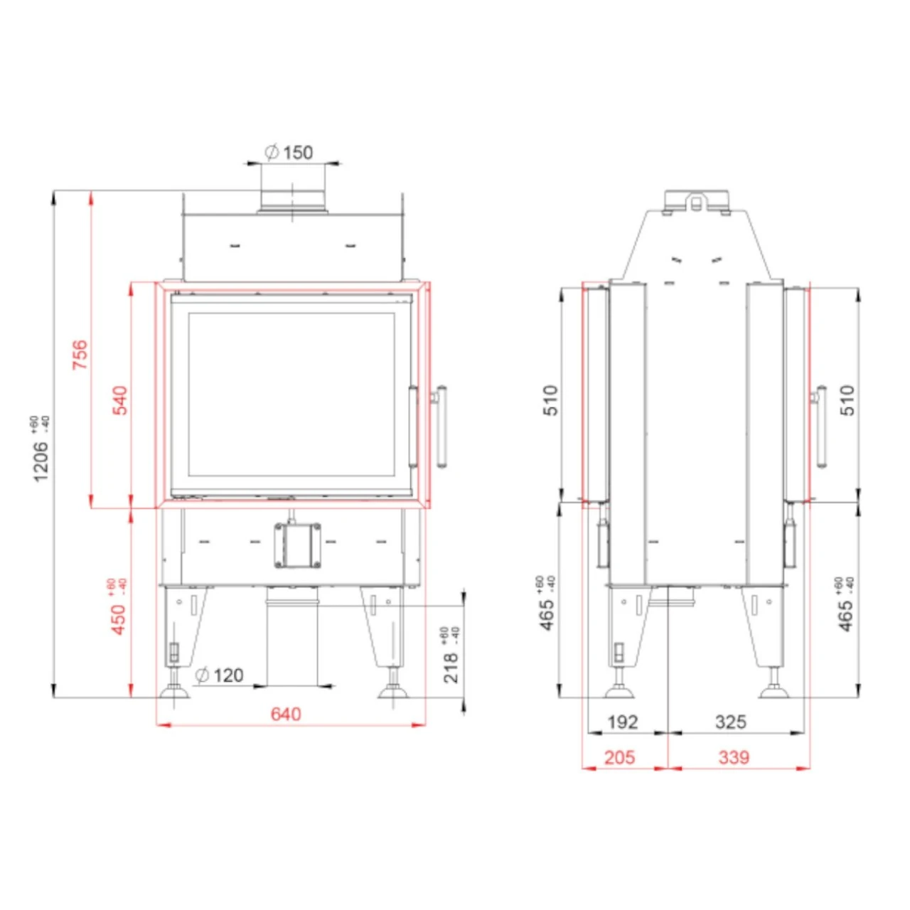 - Dieses Modell ermöglicht das Holz nachlegen aus einem anderen Raum – die Befeuerungstür ist mit Carcon ausgekleidet.