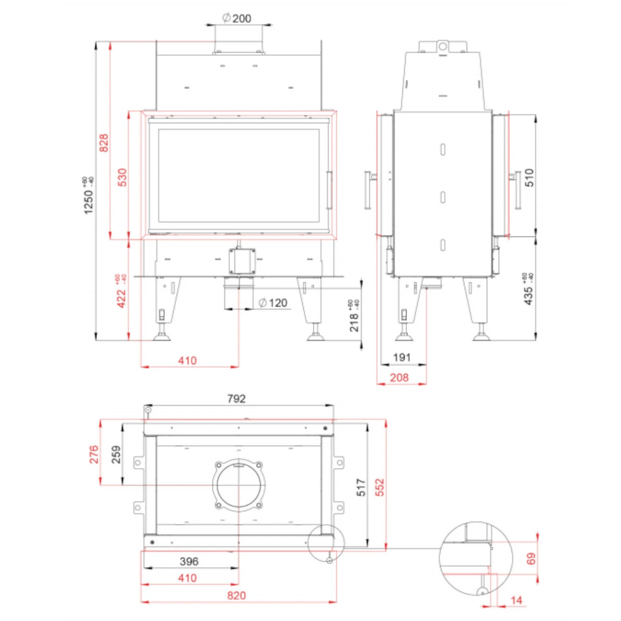Durchmesser Rauchrohr-Anschluss: 200 mm