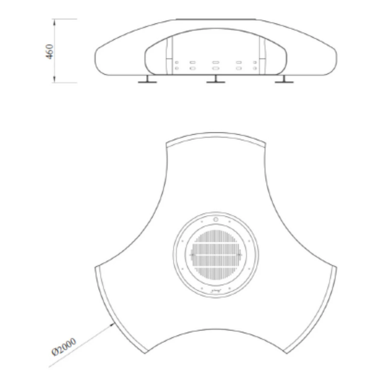 Maße Feuerstelle: Höhe: 46,0 cm x Breite: 200,0 cm x Tiefe: 200,0 cm