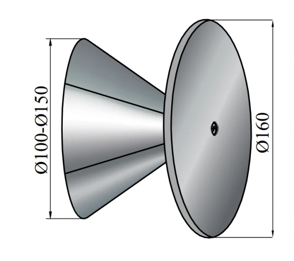 Das Innenteil ist verstellbar und ist für Öffnungen mit einer Größe von 100 bis 150 mm geeignet.