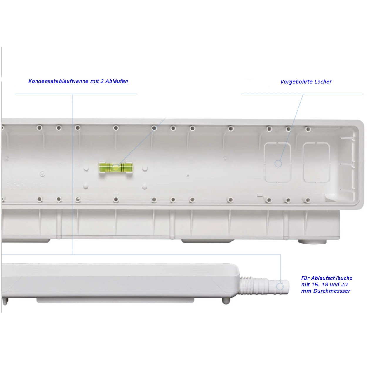 Dieses Vorbereitungsset bietet Ihnen die beste Möglichkeit, für Ihr Neubau oder Bestandsgebäude, die Anschlüsse Ihrer Klimaanlage sorgfältig und geschützt zu verlegen. Und/oder für zukünftige Klimaanlagen Planungen bestens vorbereitet zu sein. Dieses Set beinhaltet auch (siehe Bilder) eine Kondensatablaufwanne mit 2 Abläufen (einer auf jeder Seite).