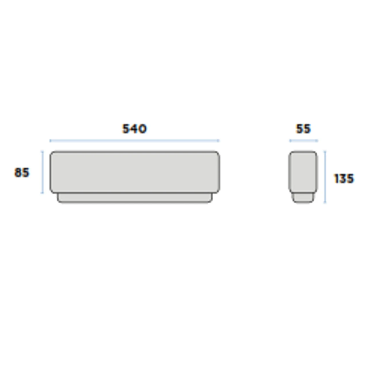 Maße: Höhe: 8,5 cm (13,5 cm) x Breite: 54,0 cm x Tiefe: 5,5 cm