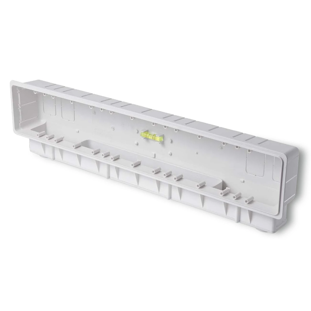 Im Lieferumpfang ist auch ein Putzdeckel sowie die spätere definitive Wandabdeckung enhalten. Die auf den Bildern abgebildete Wasserwaage gehört nicht zum Lieferumfang.