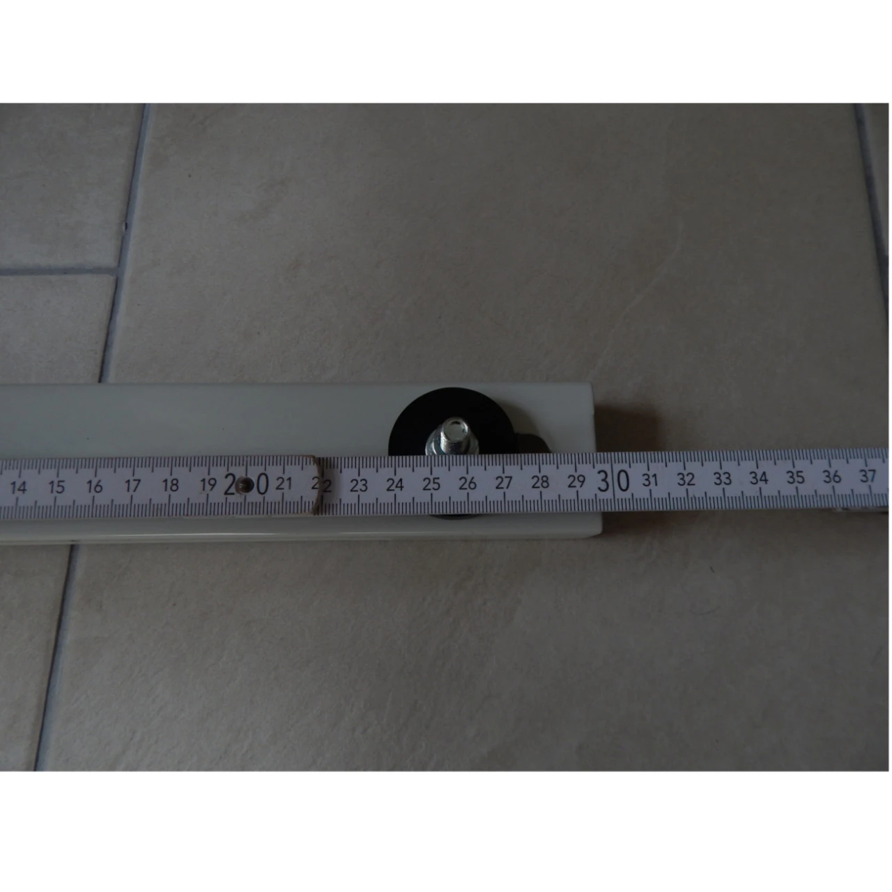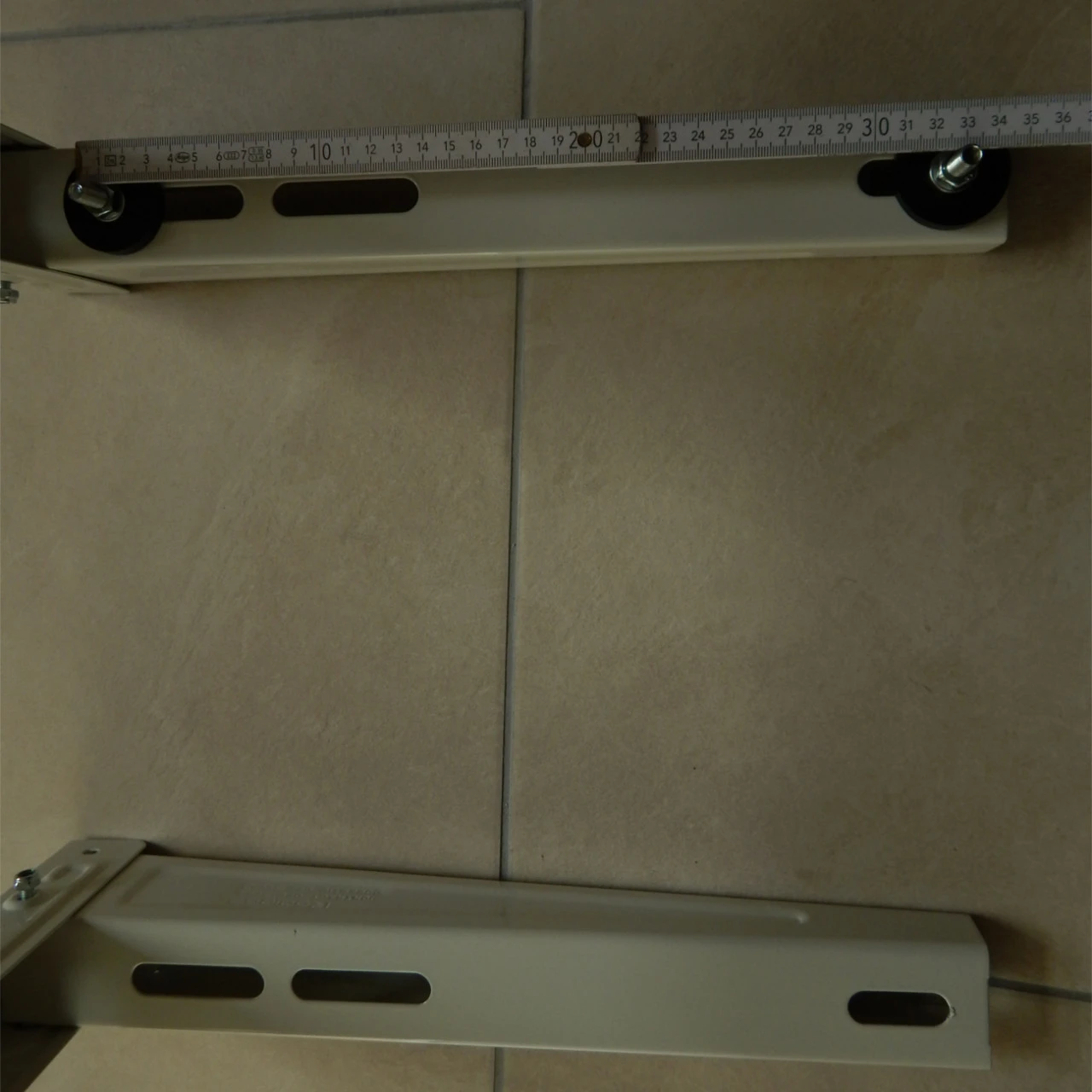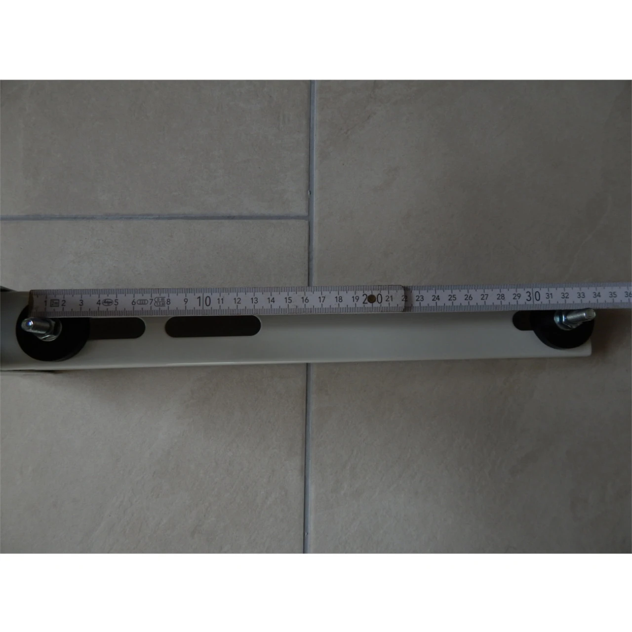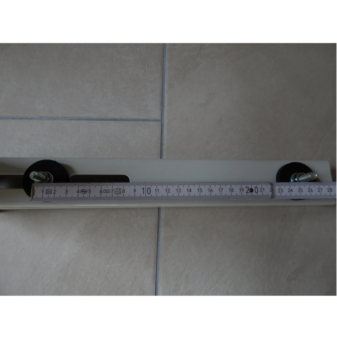 Distanz der Befestigungslöcher (siehe Fotos): Minimum: ca. 26,0 cm – Maximum: ca. 32,5 cm