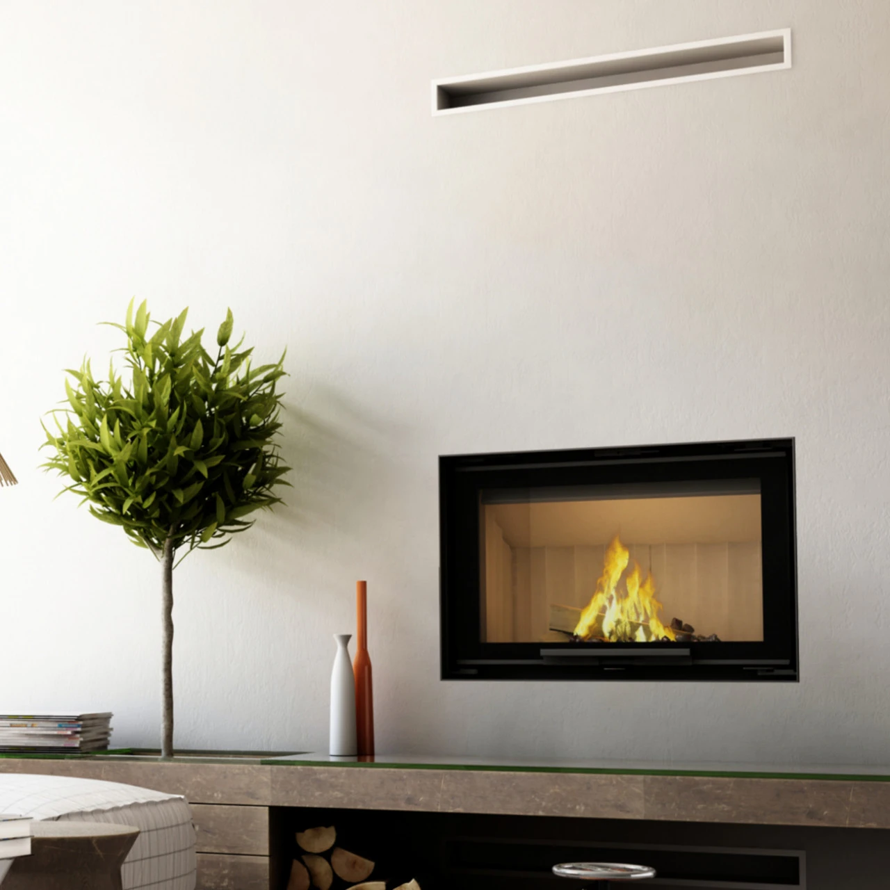 Scheibenspülung – Klare Sicht auf das Feuer – Luftstrom vor der Glasscheibe, dadurch wird die Verschmutzung der Scheibe minimiert