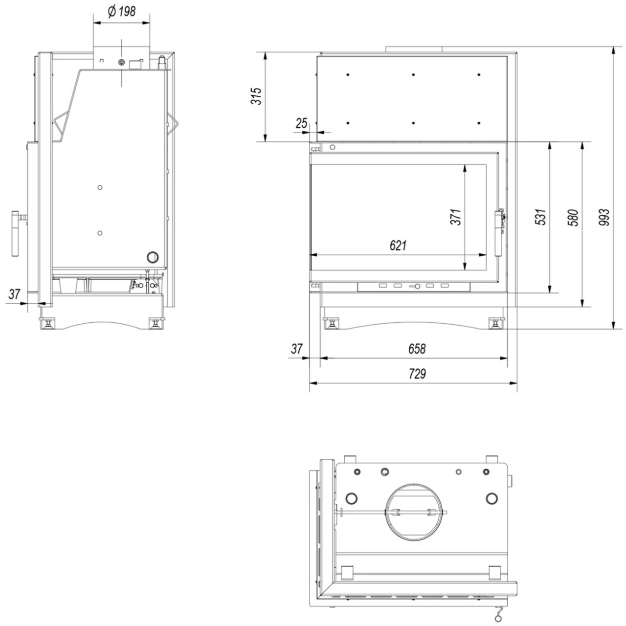 Die klassische Front des Einsatzes ist mit hitzebeständigem Keramikglas ausgestattet, welches Temperaturen bis 800°C standhält.
